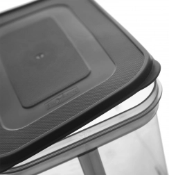 Der zuverlässig dichtende Deckel verhindert Feuchtigkeit, Verschütten und die Übertragung fremder Gerüche. Der Behälter ist temperaturbeständig von -25 °C bis +95 °C, somit geeignet für Kühlschrank, Gefrierfach und zum Erwärmen in der Mikrowelle (ohne Deckel). Die einfache Pflege gewährleistet die Spülmaschinentauglichkeit. Beim Kauf mehrerer Stücke lassen sie sich praktisch stapeln und sparen Platz.