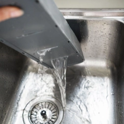 Glatte, stabile Kunststoffoberfläche in Grau ist pflegeleicht und hält dem täglichen Gebrauch stand.