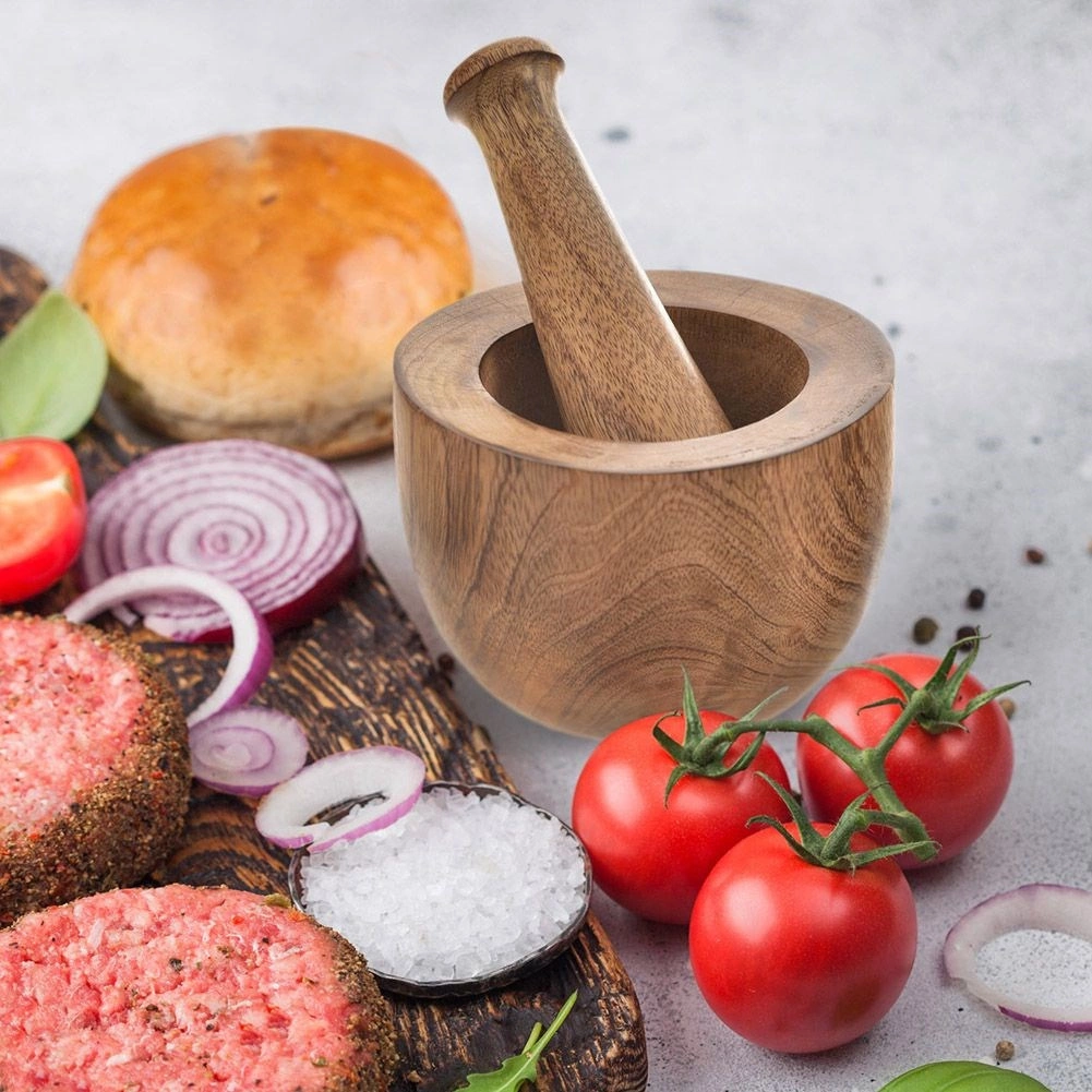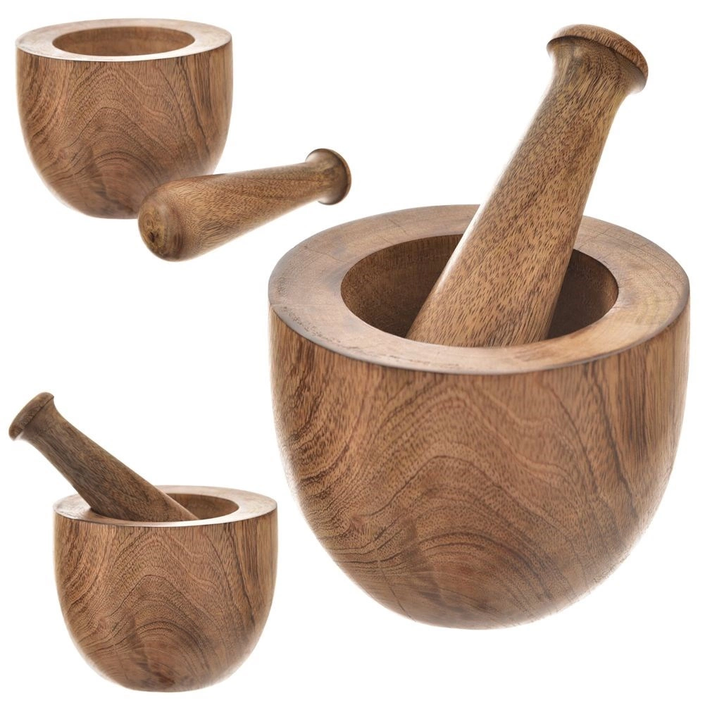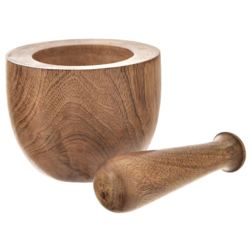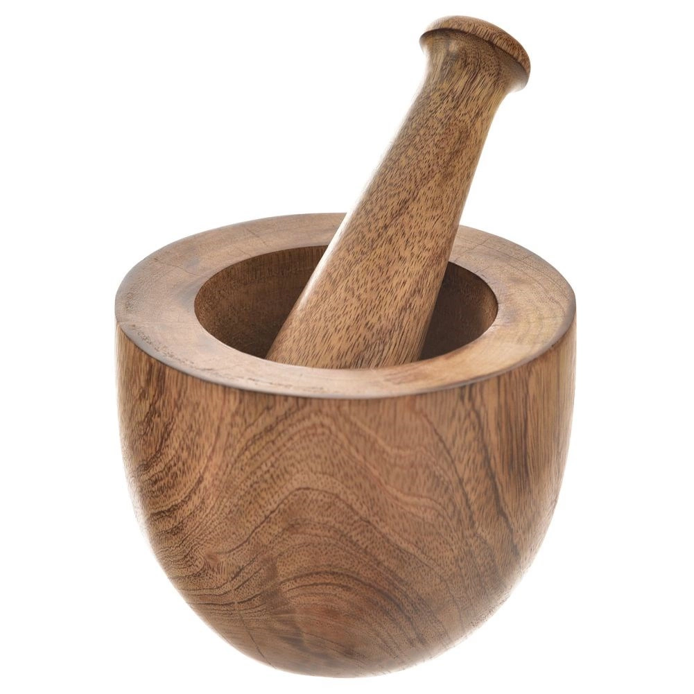 Entdecken Sie die Kraft des traditionellen Handzerkleinerns. Der Mörser aus Mangoholz bietet hervorragende Stabilität, eine angenehme Haptik und eine natürlich rauere Innenfläche für maximale Reibung. So entfaltet er mühelos das volle Aroma von frischen wie auch härteren Zutaten – von Pfeffer und Kümmel bis zu Samen oder Nüssen.