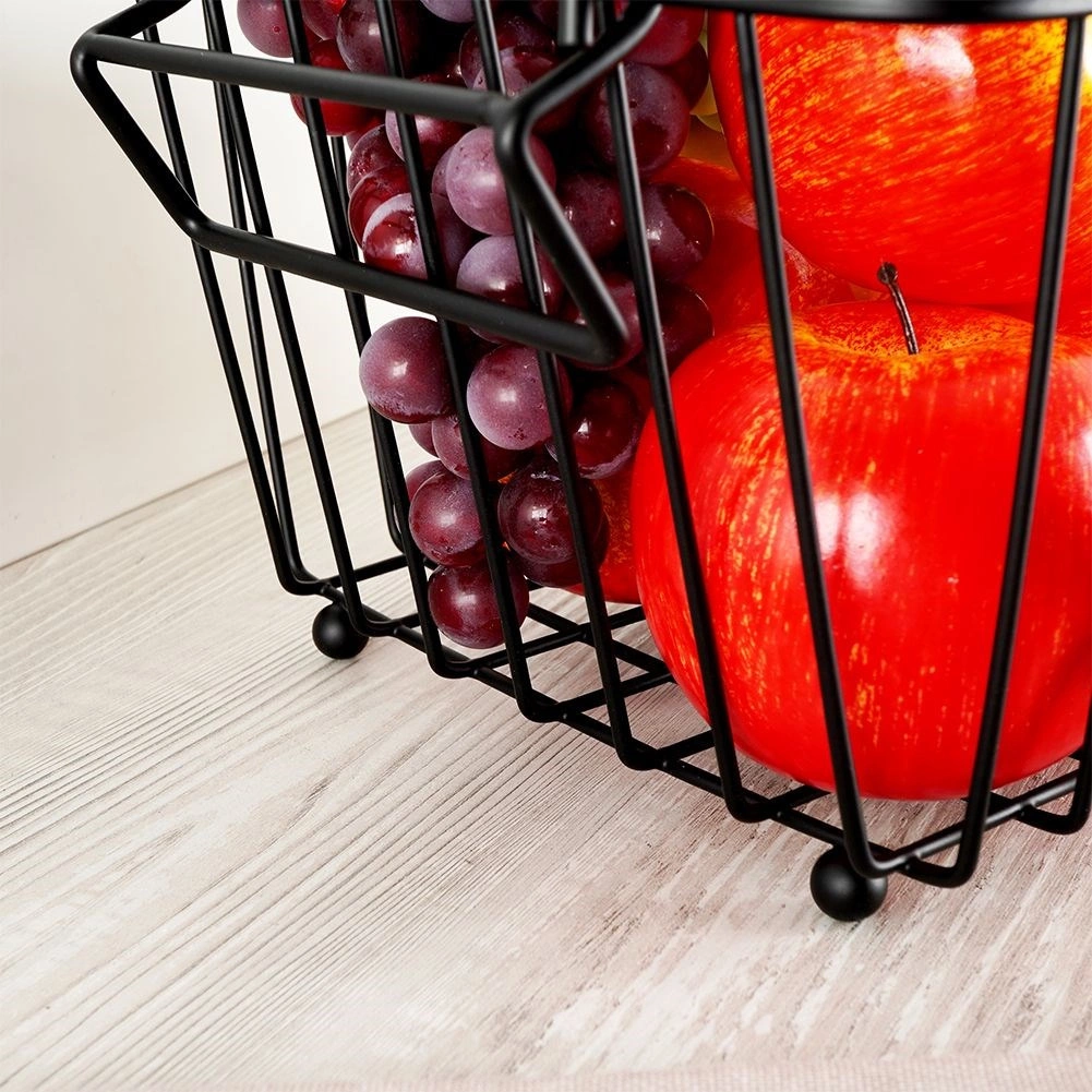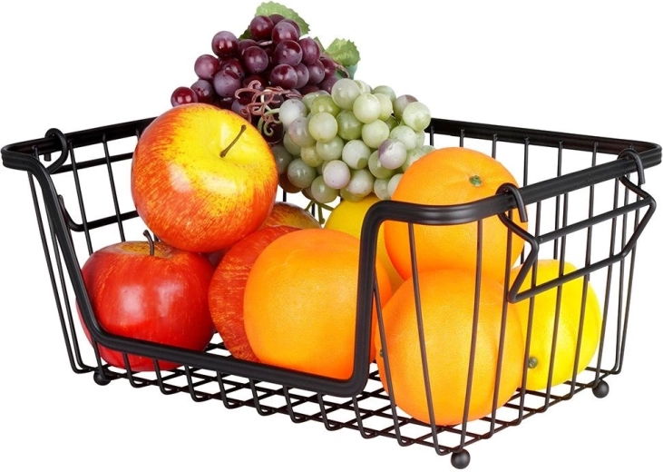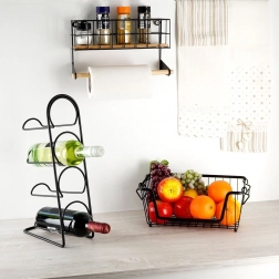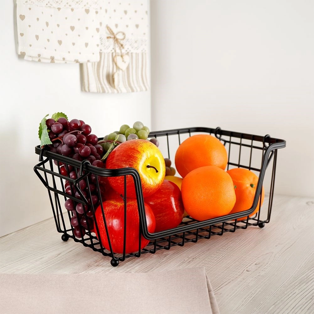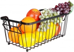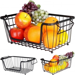 Der elegante Obst- und Gemüsekorb ist die ideale Wahl für übersichtliche und luftige Aufbewahrung auf der Arbeitsplatte oder im Regal. Die Stahlkonstruktion mit schwarzer Pulverbeschichtung sorgt für hohe Widerstandsfähigkeit und lange Lebensdauer, während die abgesenkte Vorderkante den schnellen Zugriff auf den Inhalt erleichtert.