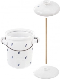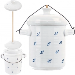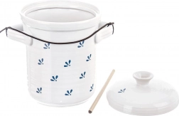 Entdecken Sie die traditionelle Art des Fermentierens zu Hause mit dem eleganten Topf MODROBILA mit 2,5 Litern Fassungsvermögen. Hochwertige glasierte Keramik in Weiß mit blauen Motiven schafft die ideale Umgebung für eine stabile Fermentation ohne Lichteinfall. Enthalten sind ein Hauptdeckel und ein innerer Andruckdeckel mit Dorn und Gummiring, der das Gemüse gleichmäßig nach unten drückt.