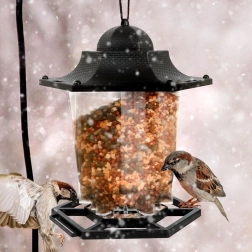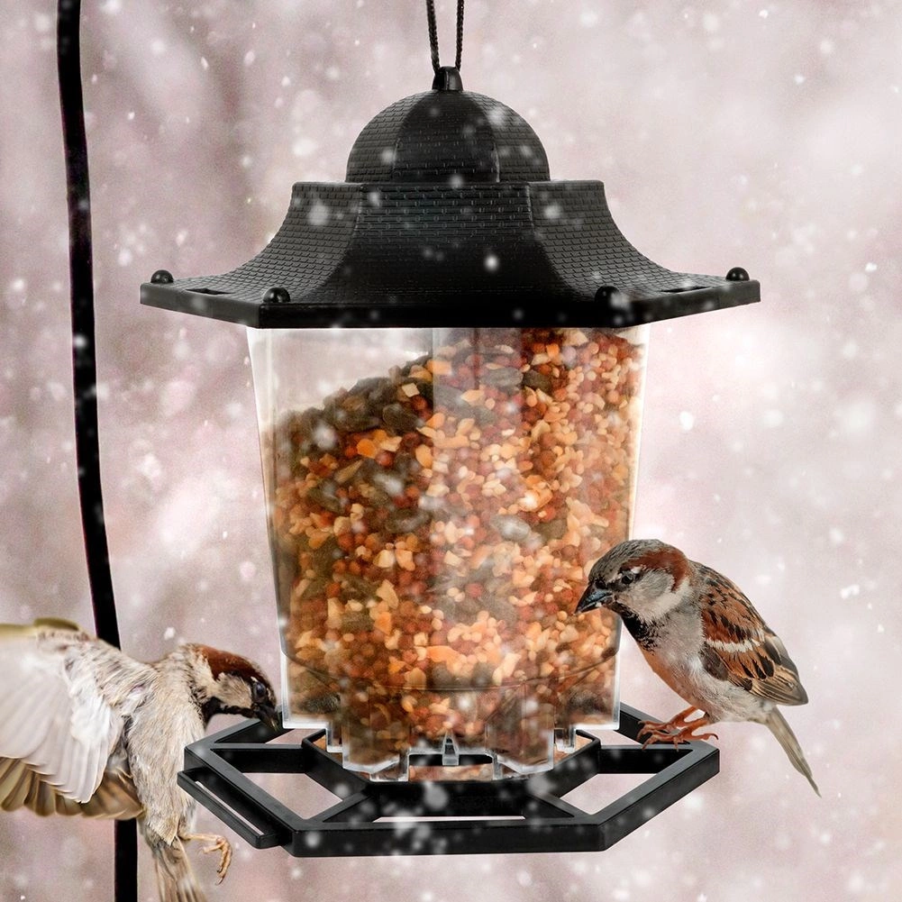 Der transparente Körper des Futterhauses ermöglicht es Ihnen auf einen Blick zu erkennen, wann es Zeit ist, Samen nachzufüllen. Kein Raten – Sie wissen immer, wie viel Futter noch vorhanden ist.