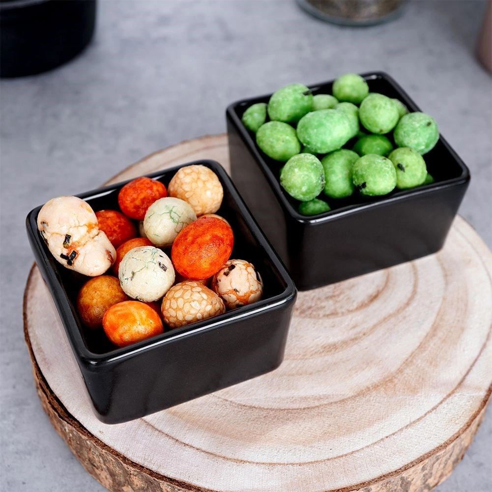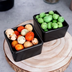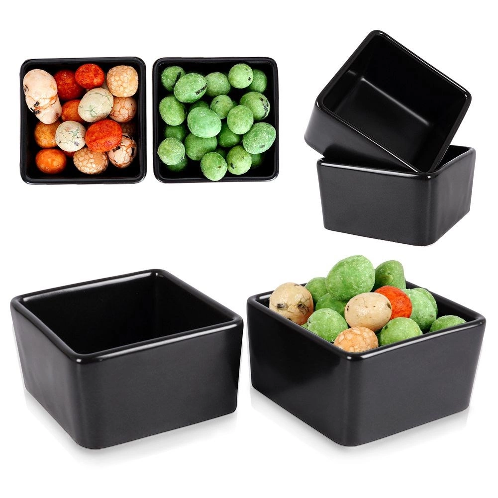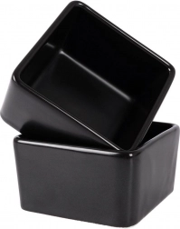 Diese vielseitigen quadratischen Schalen in elegantem Schwarz überzeugen mit klaren Linien und kompakten Maßen von 7 × 7 × 4 cm. Perfekt für Nüsse, Antipasti, Oliven, Saucen oder Dips und ein Hingucker auf jeder Tafel. Die hochwertige Keramik ist robust und leicht zu reinigen – ideal für den privaten wie auch den professionellen Einsatz.