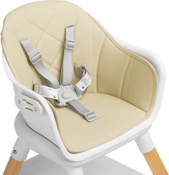 Das profilierte Tablett mit abnehmbarem Oberteil minimiert Schmutz beim Füttern und erleichtert die Reinigung. Die Polsterung aus Kunstleder zusammen mit der Sitzschale aus Kunststoff lässt sich einfach abwischen. Für maximale Sicherheit sorgen vier massive Holzbeine mit rutschfesten Endkappen und ein verstellbarer 5-Punkt-Sicherheitsgurt. Das Produkt entspricht der Norm EN 14988:2017+A1:2020.