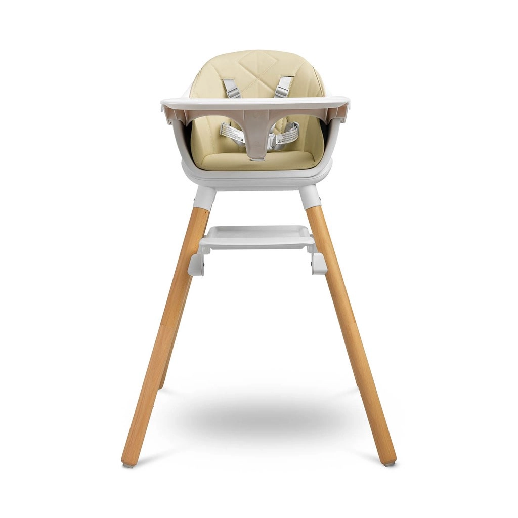 Massive Holzbeine mit rutschfesten Endkappen und ein 5-Punkt-Sicherheitsgurt halten Ihr Kind bei jeder Mahlzeit sicher.