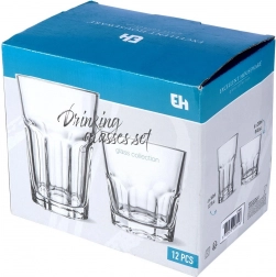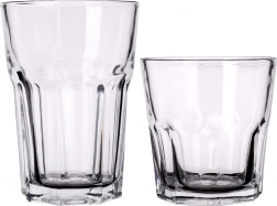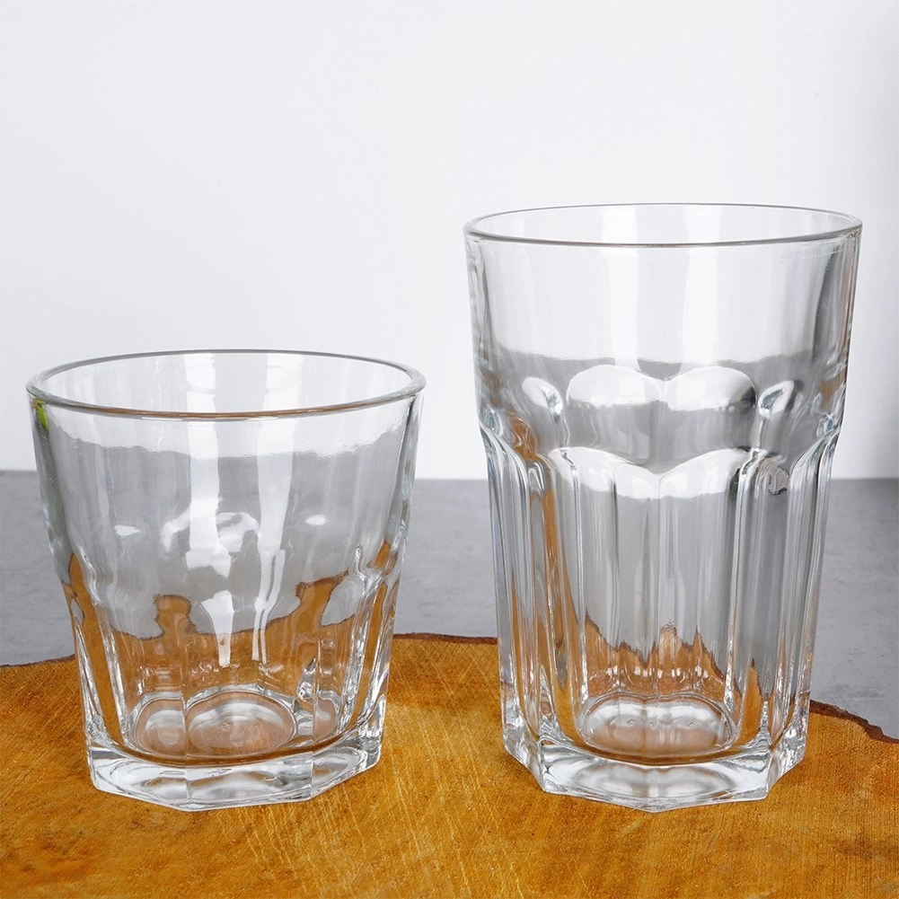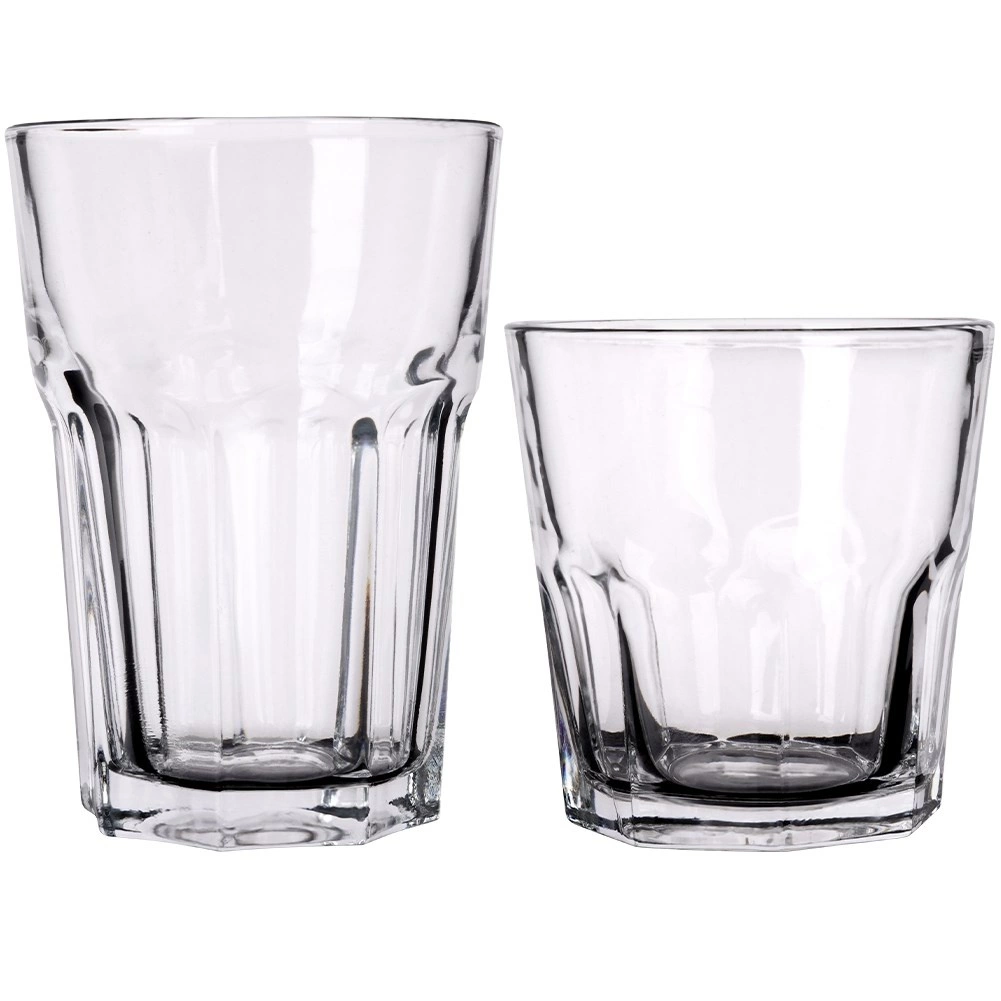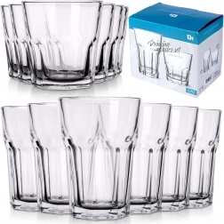 Das Set umfasst 6 kleinere Gläser mit 230 ml und 6 größere mit 330 ml – ideal für Wasser, Saft und Mixgetränke.