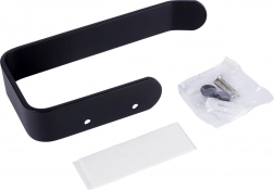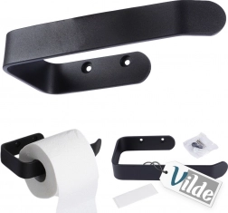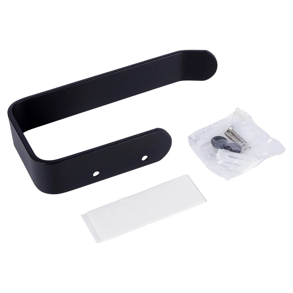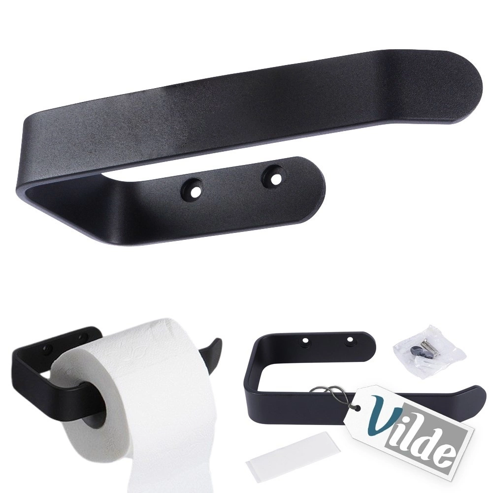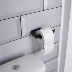 Eleganter Toilettenpapierhalter aus hochwertigem Metall in mattem Schwarz, ideal für moderne wie klassische Bäder. Die offene Konstruktion ermöglicht einen schnellen Rollenwechsel und ein gleichmäßiges Abrollen des Papiers.