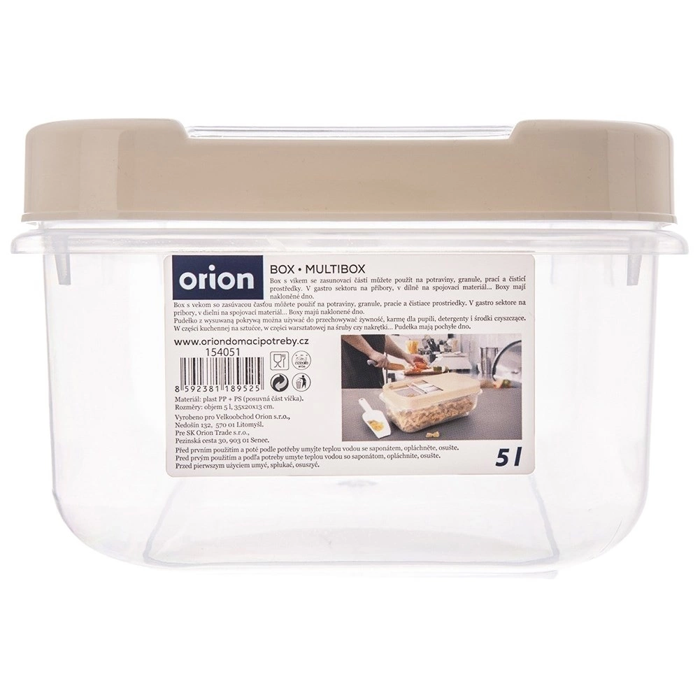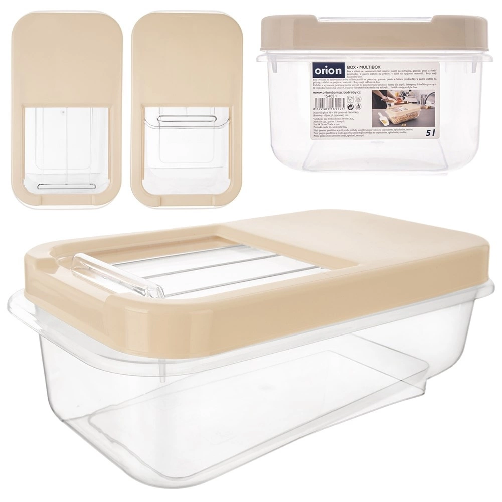 Halten Sie Ordnung in Küche, Speisekammer und Bad mit der geräumigen Box mit 5 l Volumen. Der transparente Korpus ermöglicht eine schnelle Bestandskontrolle, und das Schiebedeckel sorgt für komfortables Dosieren, ohne die gesamte Box öffnen zu müssen. Der schräge Boden erleichtert das Ausgießen und den Zugang zu den letzten Resten.