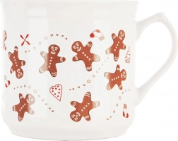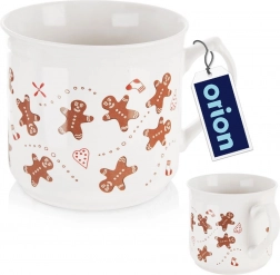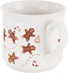 Großer Keramikbecher mit Henkel und weihnachtlichem Lebkuchenmotiv, ideal für Kaffee, Tee, Kakao und Kräutergetränke. Er hat ein Fassungsvermögen von 700 ml, liegt gut in der Hand und ist dank hochwertiger Keramik spülmaschinen- und mikrowellengeeignet. Das stilvolle festliche Design bringt Glanz in winterliche Tage und eignet sich hervorragend als Geschenk.
