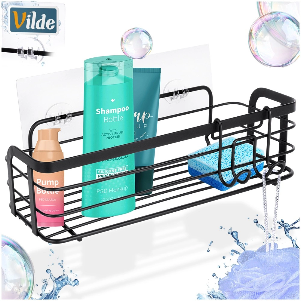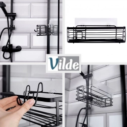 Die stilvolle Badezimmerablage im industriellen Loft-Stil ist ideal für die Dusche, neben der Badewanne oder am Waschbecken. Dank der selbstklebenden Montage befestigen Sie sie schnell und ohne Bohren. Die matte schwarze Oberfläche und das hochwertige Metall sorgen für Langlebigkeit und einfache Pflege.