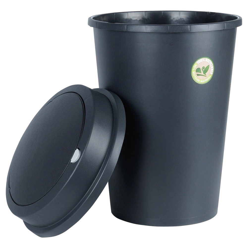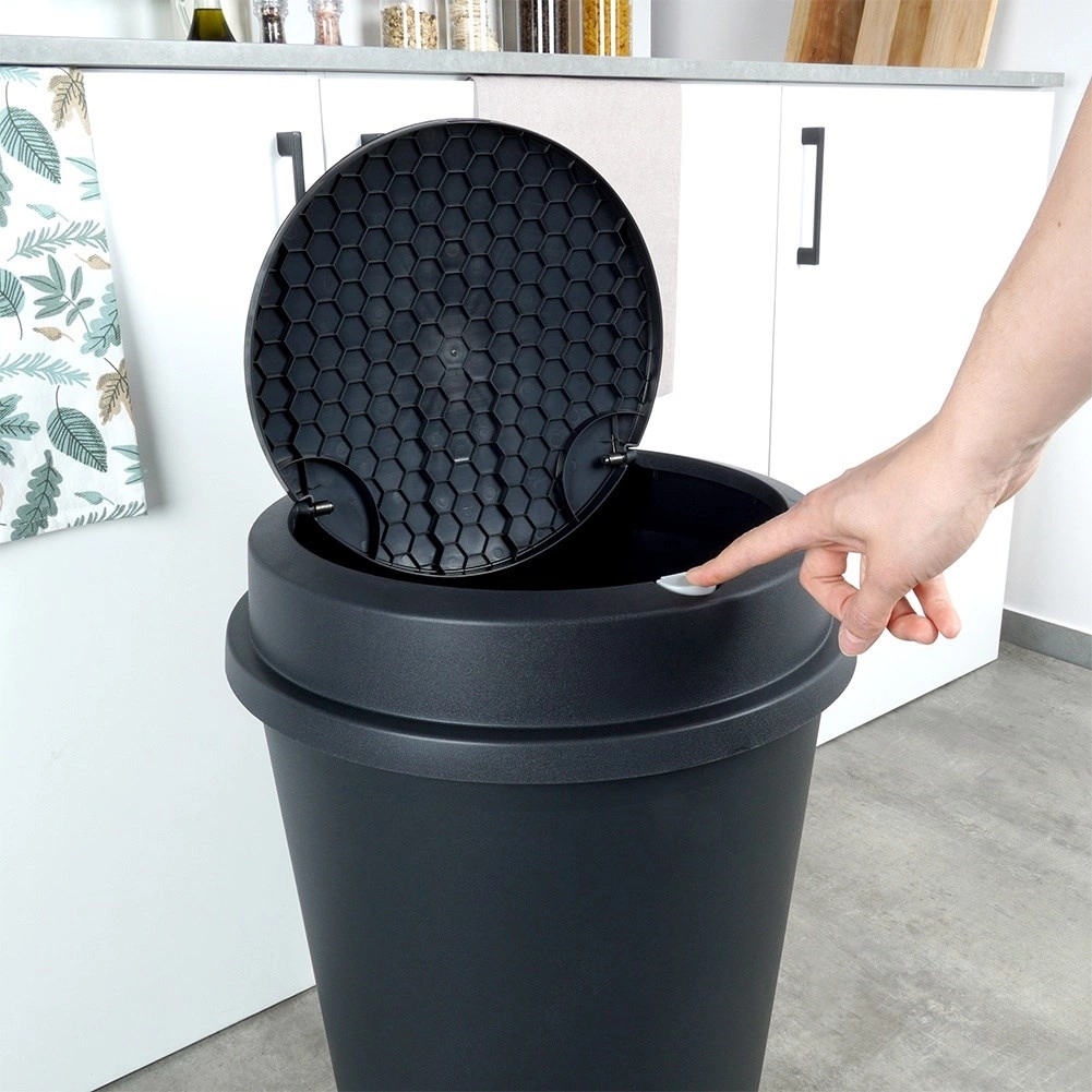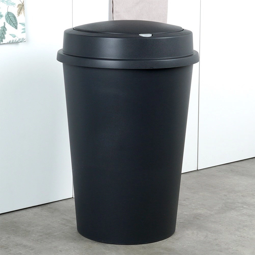 Dieser schwarze Mülleimer mit 47 Litern Volumen ist für täglichen Komfort und Sauberkeit konzipiert. Er verfügt über ein zweistufiges Deckel-System für schnelles Einwerfen per Schwenkfunktion sowie Knopföffnung, die hilft, Geruchsverbreitung zu reduzieren. Durch das zeitlose Design passt er hervorragend in moderne wie klassische Innenräume.