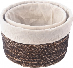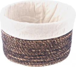 Dieser vielseitige Aufbewahrungskorb in natürlichem Farbton verbindet rustikalen Look mit praktischer Funktion. Das Handflechtwerk aus Wasserhyazinthe betont die Materialstruktur, während der helle, herausnehmbare und waschbare Stoffeinsatz den Inhalt schützt und die Pflege erleichtert.
