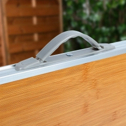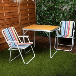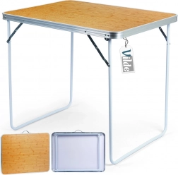 Der leichte und robuste Klapptisch ist ideal für Garten, Balkon, Terrasse und unterwegs – Camping, Zelten oder Picknick. Die MDF-Platte im modernen Holzdekor ist durch eine spezielle Oberflächenbehandlung geschützt, die Aluminiumkante und Stahlbeine sorgen für Stabilität und lange Lebensdauer. Zusammengeklappt hat er kompakte Maße und die Form eines flachen Koffers mit bequemem Griff.