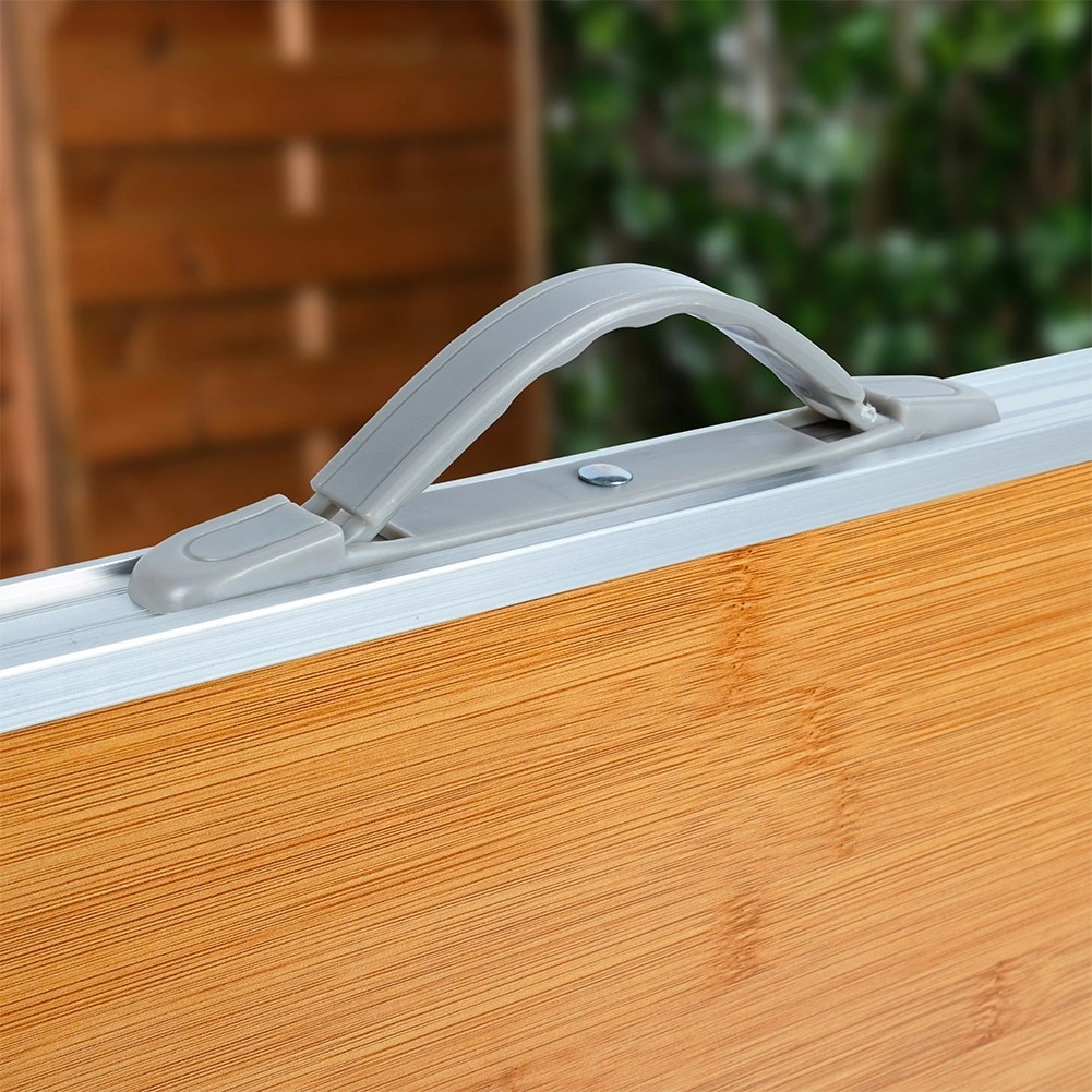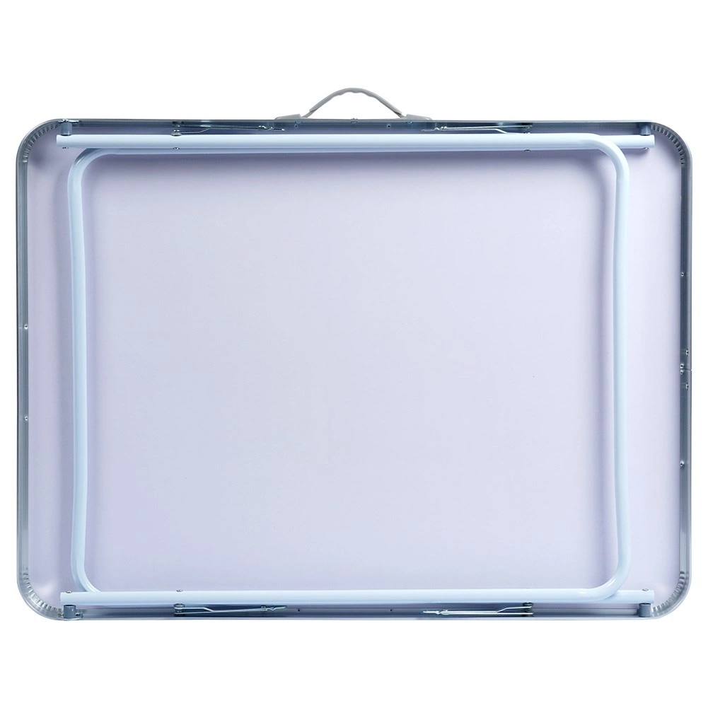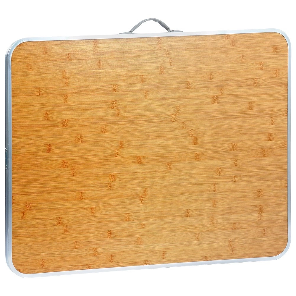 Zusammengeklappt hat der Tisch eine flache Form und einen praktischen Griff für bequemen Transport. Ideal zum Campen, für Picknicks und Reisen.