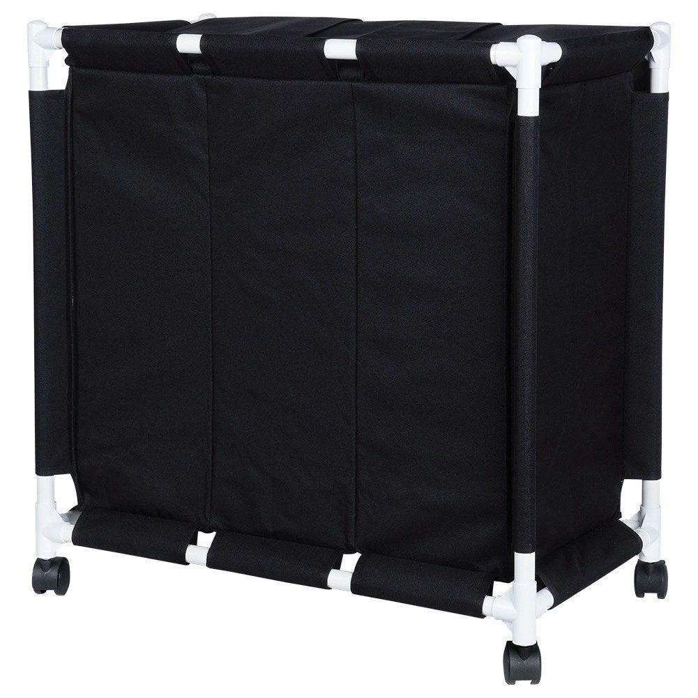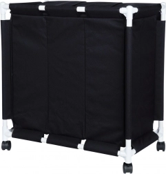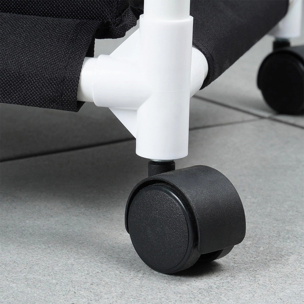 Weißer Kunststoffrahmen mit festen Verbindern und schwarze Polyesterbeutel behalten ihre Form auch bei höherer Belastung. Praktische Ausführung für Bad, Schlafzimmer und Ankleide.