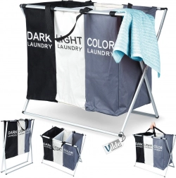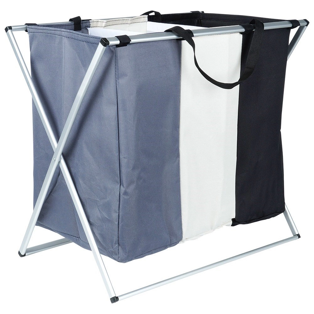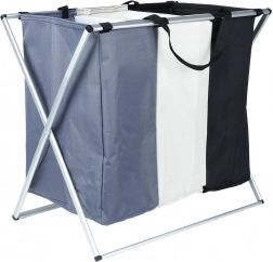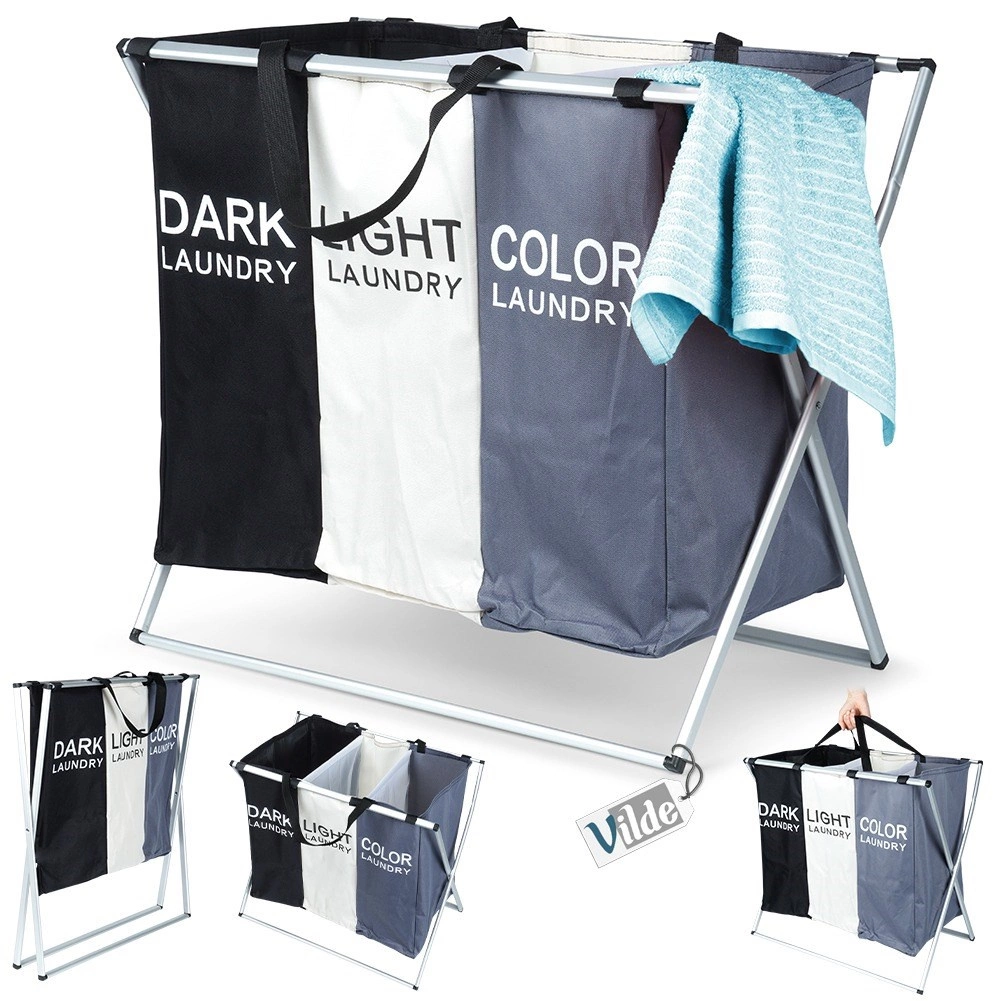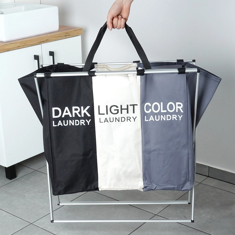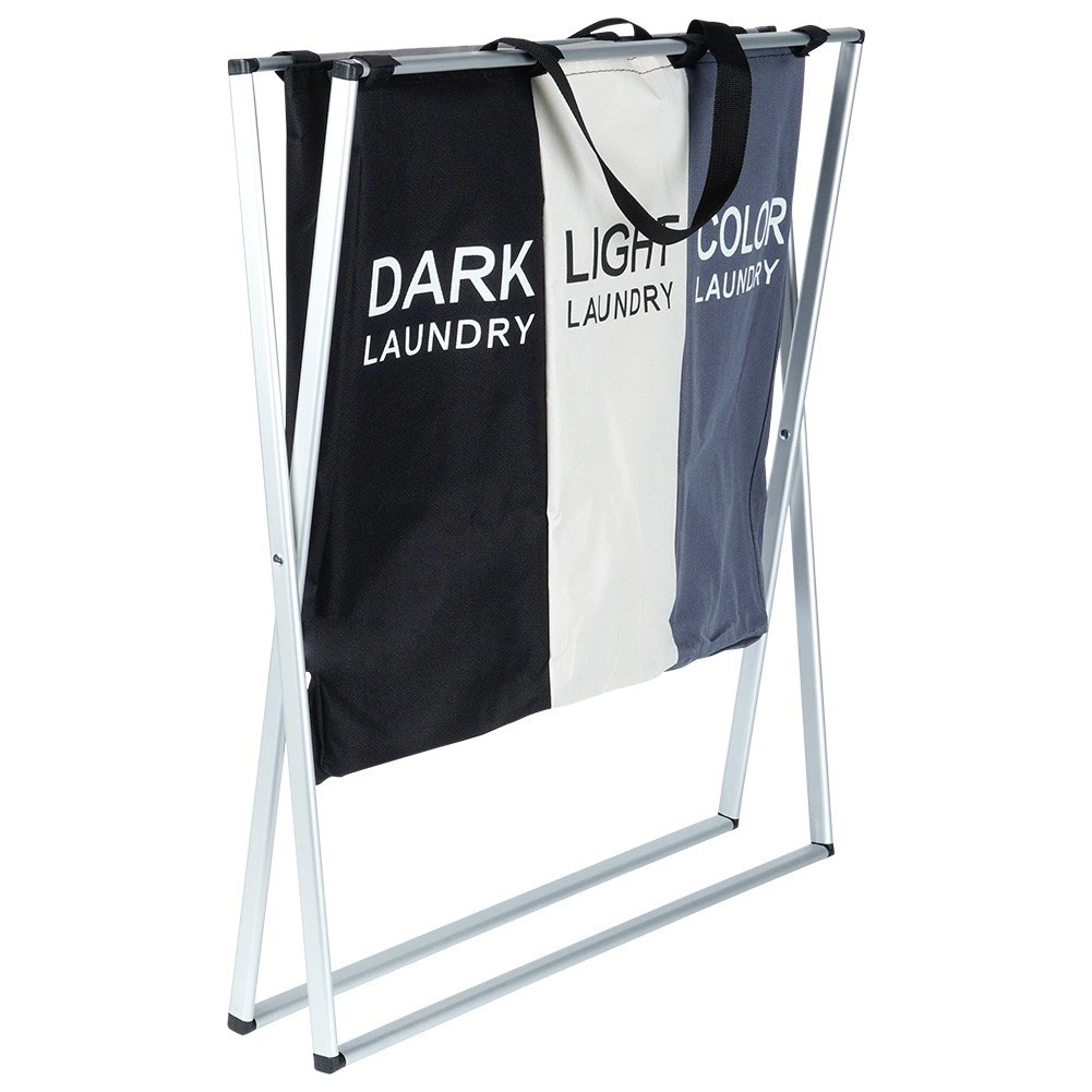 Halten Sie Ordnung in der Wäsche mit dem übersichtlichen Wäschekorb mit drei Kammern, der das sofortige Sortieren in dunkle, helle und farbige Wäsche ermöglicht. Der leichte, aber stabile Metallrahmen in Silber und die robusten Textiltaschen sorgen für lange Lebensdauer und komfortable tägliche Nutzung.
