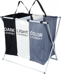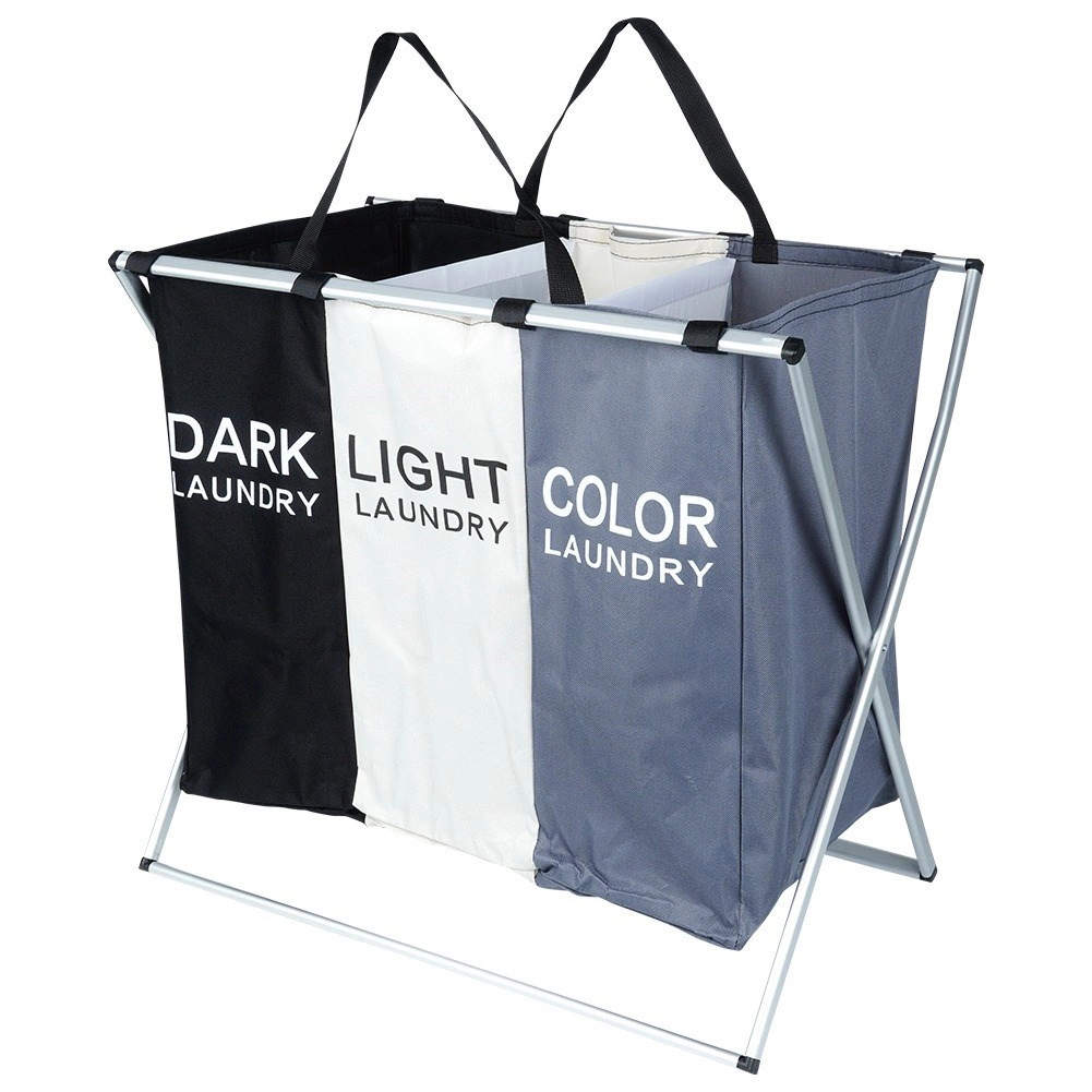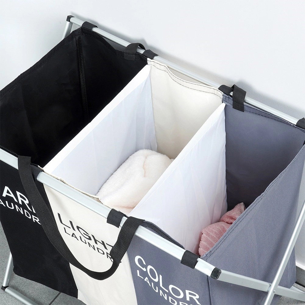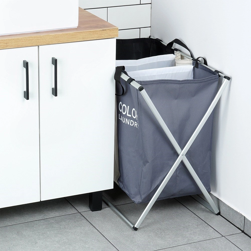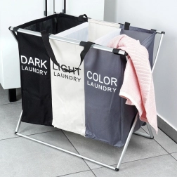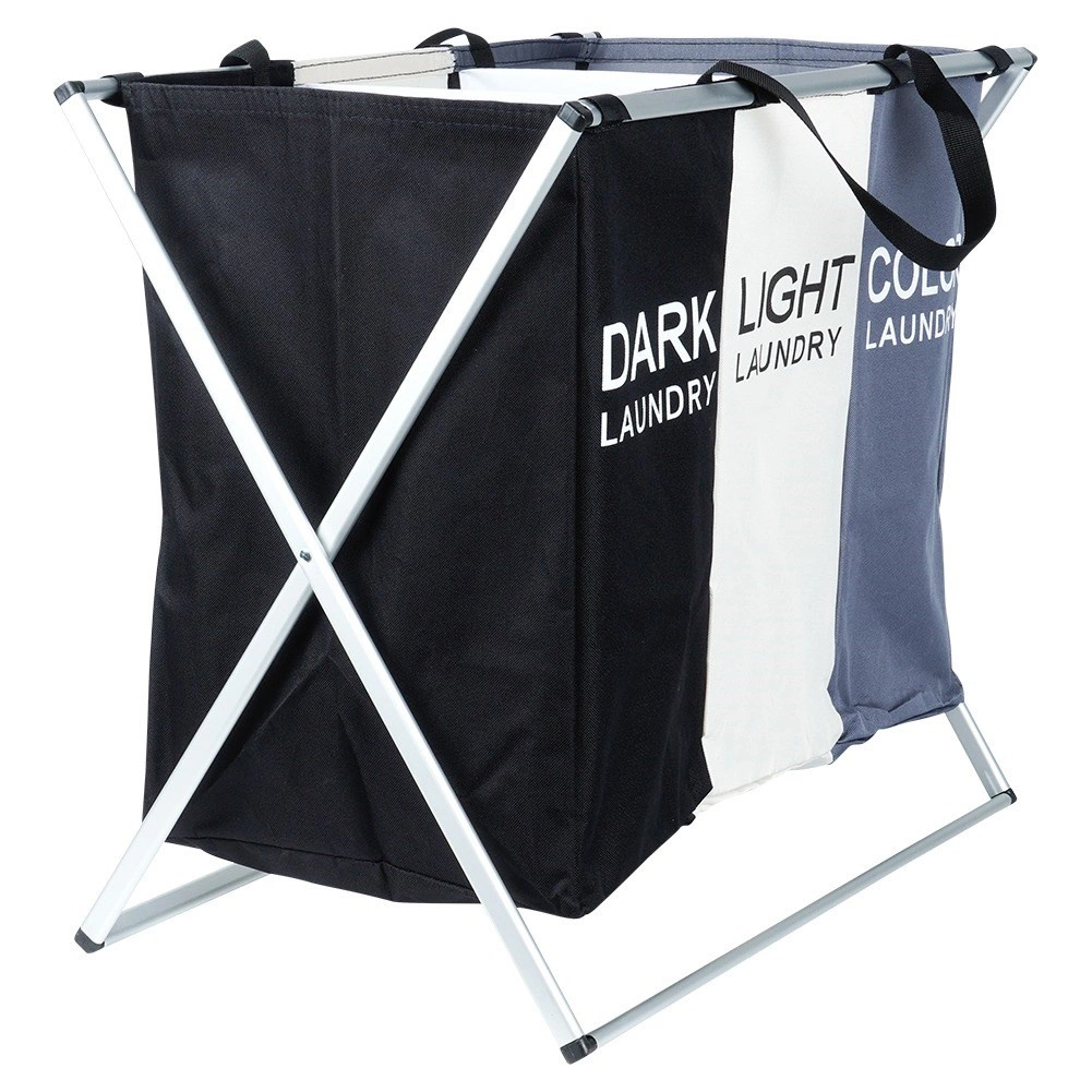 Halten Sie Ordnung in der Wäsche mit dem übersichtlichen Wäschekorb mit drei Kammern, der das sofortige Sortieren in dunkle, helle und farbige Wäsche ermöglicht. Der leichte, aber stabile Metallrahmen in Silber und die robusten Textiltaschen sorgen für lange Lebensdauer und komfortable tägliche Nutzung.