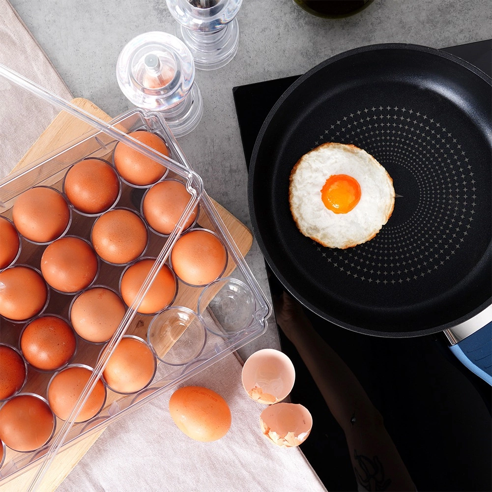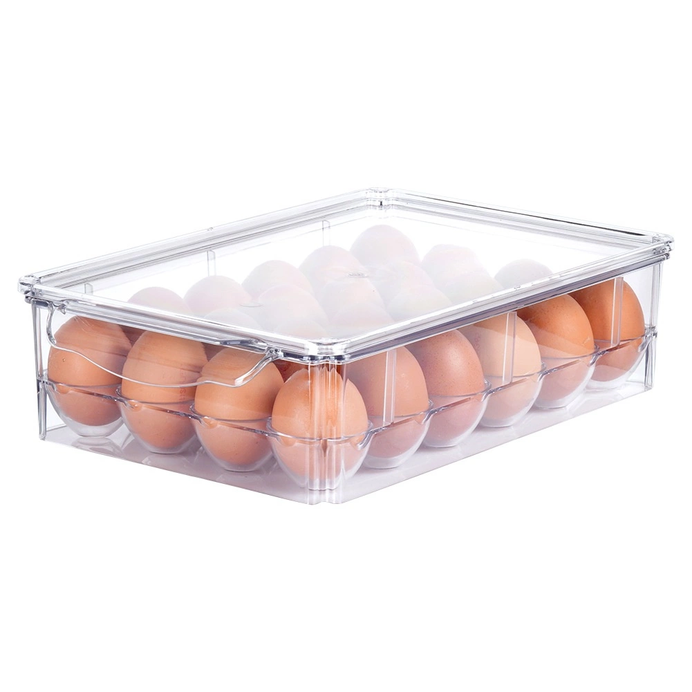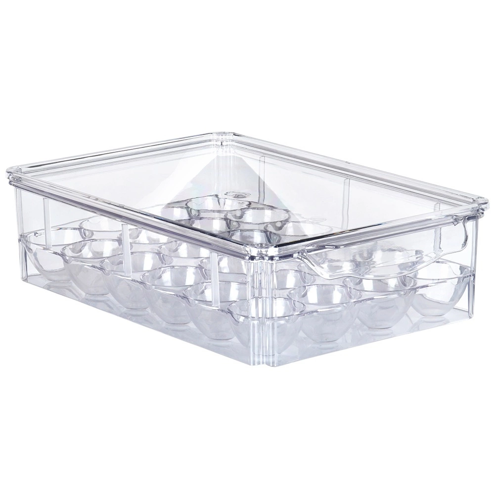 Halten Sie Ordnung im Kühlschrank mit dem geräumigen Eierorganizer, der bis zu 24 Stück fasst. Die robuste, vollständig transparente Ausführung ermöglicht die sofortige visuelle Kontrolle des Vorrats, während geformte Mulden jedes Ei sicher fixieren. Das praktische Deckel schützt vor Fremdgerüchen und Feuchtigkeit und erlaubt das bequeme Stapeln mehrerer Boxen übereinander.