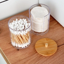 Zweiteiliger Organizer für Wattestäbchen und Abschminkpads mit Bambusdeckel