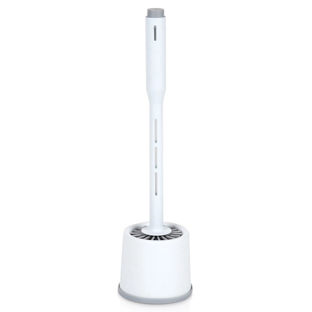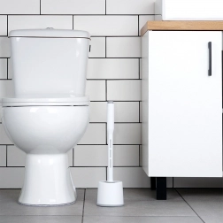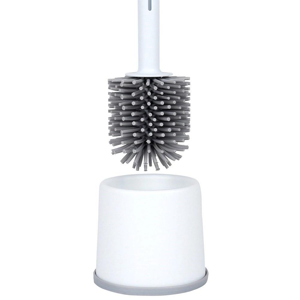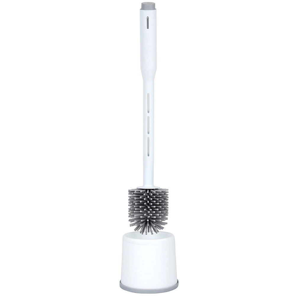 Silikon-WC-Bürste mit Ständer und Spender, weiß 40 cm