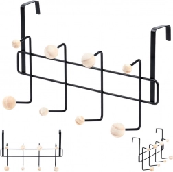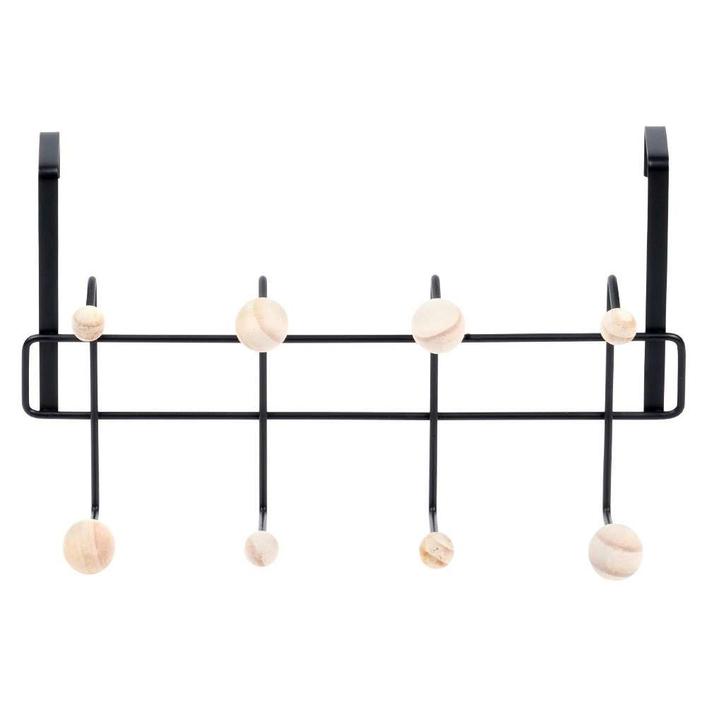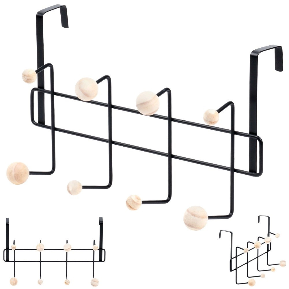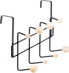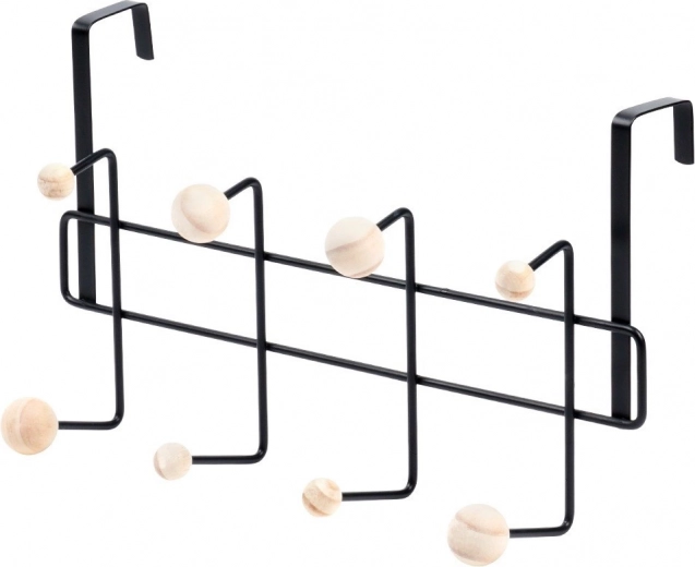 Stufenförmig angeordnete Haken mit Holzkugeln ermöglichen übersichtliches Aufhängen mehrerer Kleidungsstücke, Taschen und Handtücher ohne Knittern.