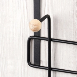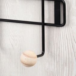 Die Konstruktion aus pulverbeschichtetem Metall garantiert Stabilität und Langlebigkeit, während glatte Holzkugeln Kleidung schonend halten, ohne sie zu beschädigen. Dank des universellen Designs passt er perfekt in moderne und skandinavische Interieurs in Bad, Küche, Flur oder Schlafzimmer.