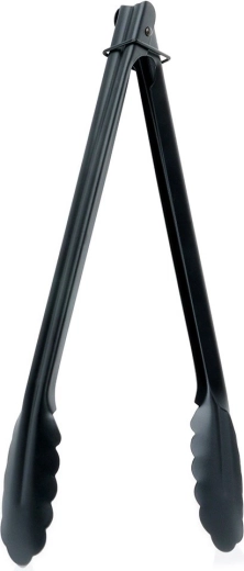 Praktische Küchenzange mit 31 cm Länge für den täglichen Einsatz beim Kochen und Grillen. Dank der Edelstahlkonstruktion mit schwarzer Oberfläche, den gezahnten Greifflächen für sicheren Halt und der Sicherheitsverriegelung gelingen Wenden, Servieren und das Handling heißer Speisen mühelos. Sie ist spülmaschinengeeignet und lässt sich platzsparend am Reling aufhängen.