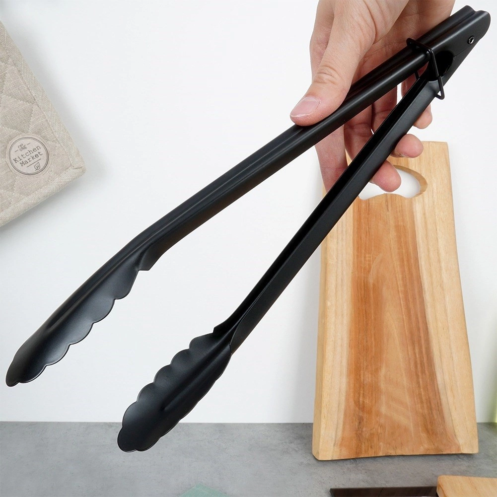 Küchenzange aus Edelstahl, schwarz, 31 cm
