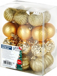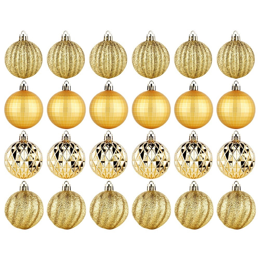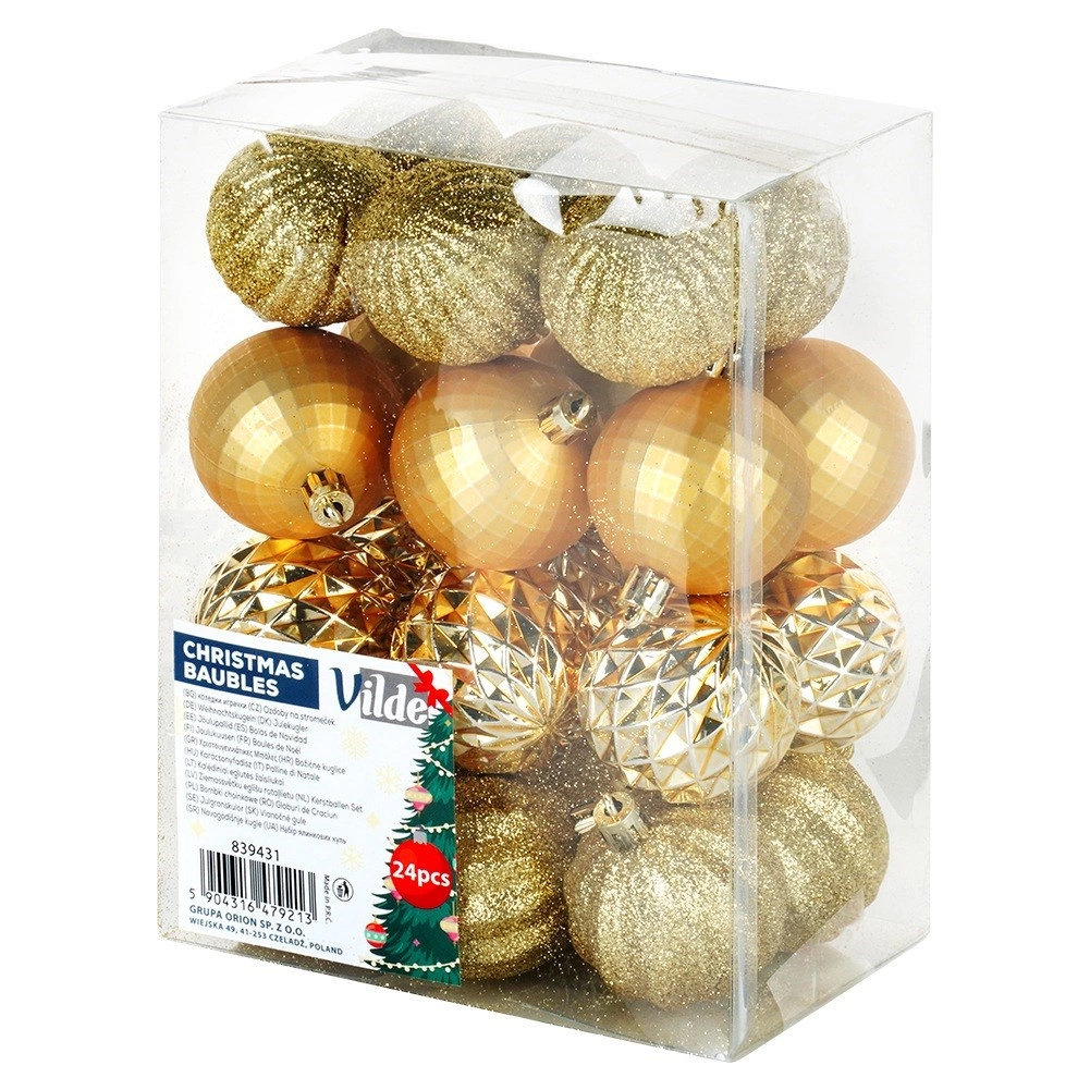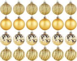 Im Set enthalten sind 24 Kugeln mit 5 cm Durchmesser sowie Bändchen für eine einfache und schnelle Dekoration von Weihnachtsbaum, Kränzen und Girlanden.
