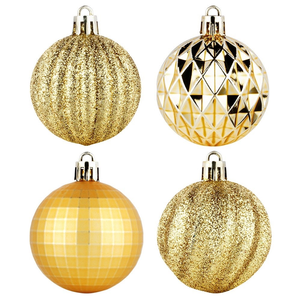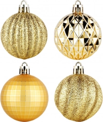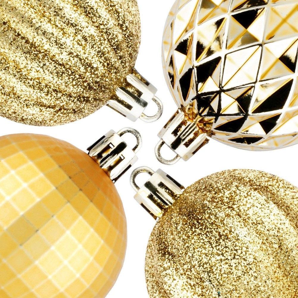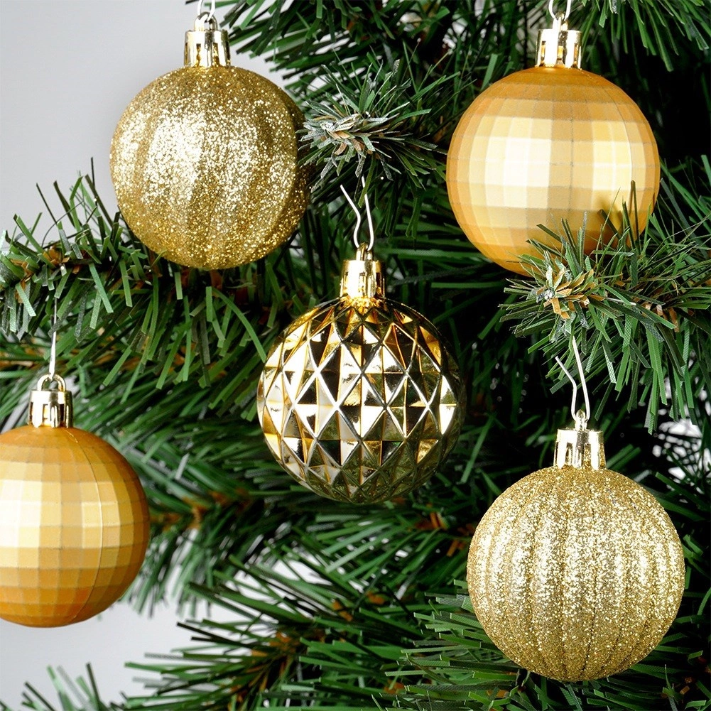 Schaffen Sie eine zauberhafte Festtagsatmosphäre mit dem Set goldener Kugeln, das Ihrem Baum luxuriösen Glanz und Tiefe verleiht. Die vielfältigen Texturen und Oberflächen sorgen für eine optisch abwechslungsreiche und harmonische Dekoration, die an jedem Zweig zur Geltung kommt.