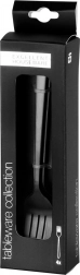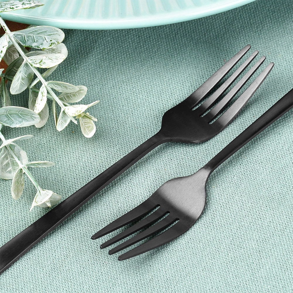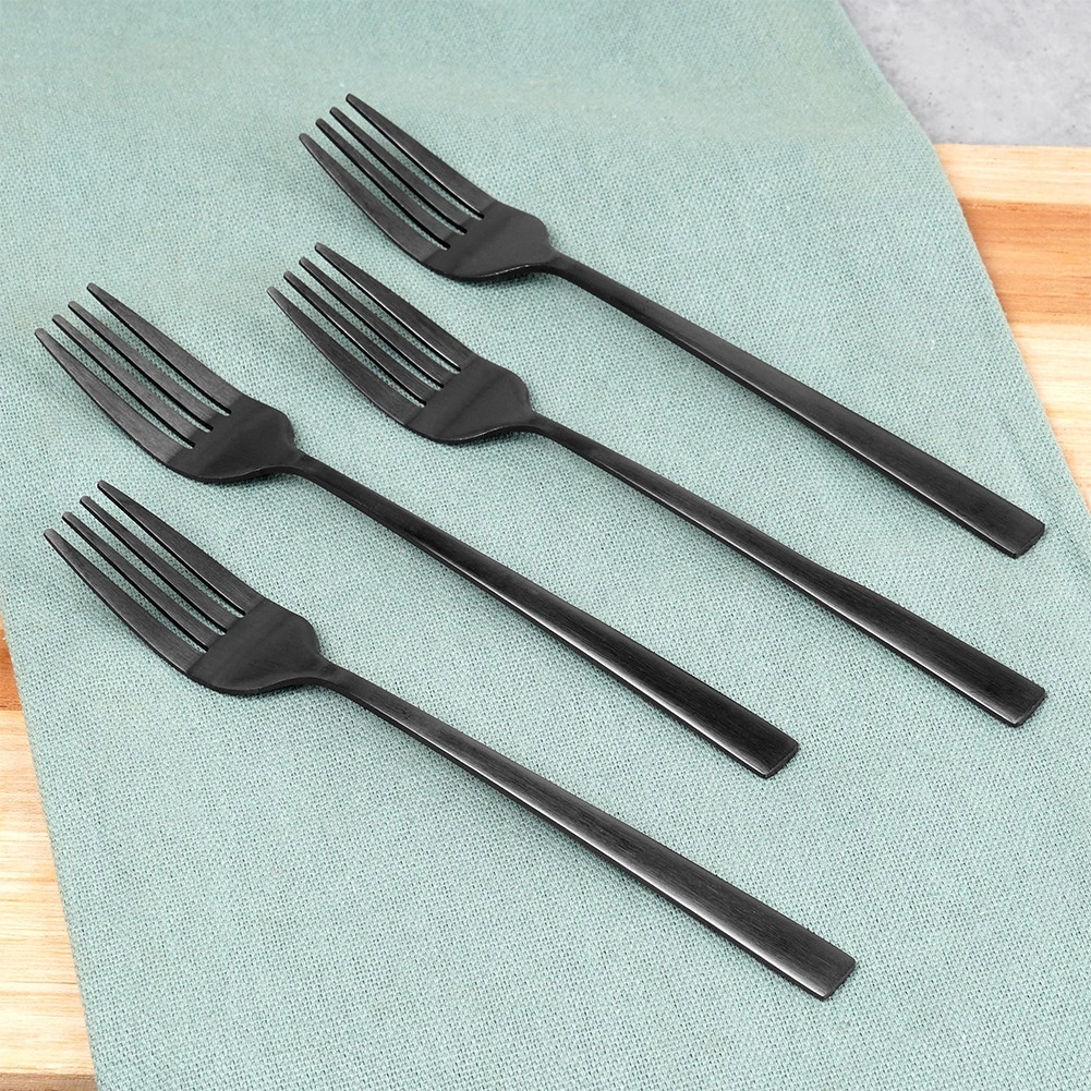 Elegantes Set aus vier Dessertgabeln in modernem, mattschwarzem Finish aus hochwertigem Edelstahl. Sie sind lebensmittelecht, spülmaschinengeeignet und ideal zum Servieren von Torten, Kuchen und Desserts – zu Hause wie in der Gastronomie.