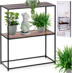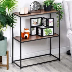 Dieses zweistöckige Regal mit den Maßen 70 × 30,5 × 85 cm eignet sich ideal zum übersichtlichen Verstauen und stilvollen Präsentieren von Deko, Büchern, Pflanzen sowie Bad- und Küchendaccessoires. Der robuste Metallrahmen in Schwarz in Kombination mit MDF-Böden im Holzdekor sorgt für einen modernen Industrial-Look, der in die meisten Interieurs passt.