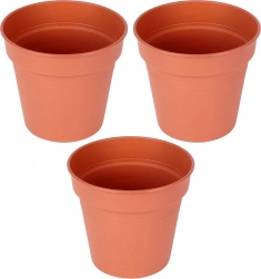 Mit diesem 3er-Set präsentieren Sie Ihre Lieblingskräuter und -blumen ganz einfach drinnen wie draußen. Das zeitlose runde Design im Ziegelton passt zu jedem Stil und unterstreicht die natürliche Schönheit der Pflanzen. Das Material ist leicht, dabei robust und leicht zu reinigen.