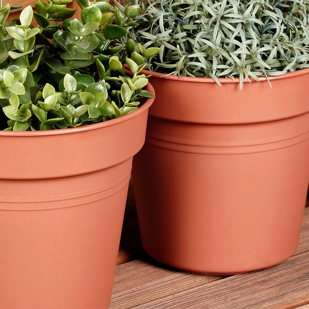 Die klassische runde Form und der Ziegelton passen zu modernem wie rustikalem Stil. Perfekt für Kräuter auf der Küchenfensterbank, saisonale Blüten auf dem Balkon und Grünpflanzen auf der Terrasse.
