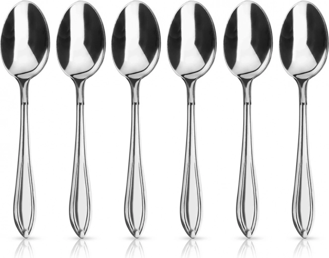 Praktisches Set mit sechs Löffeln, das jedes Tafel-Set ergänzt und den Tisch aufwertet. Die glänzende Ausführung wirkt elegant und das universelle Design passt zu klassischen wie modernen Garnituren. Ideal zum Servieren von Kaffee, Tee und Desserts.