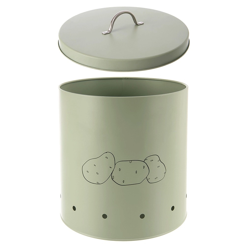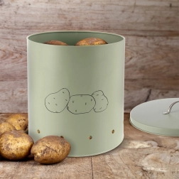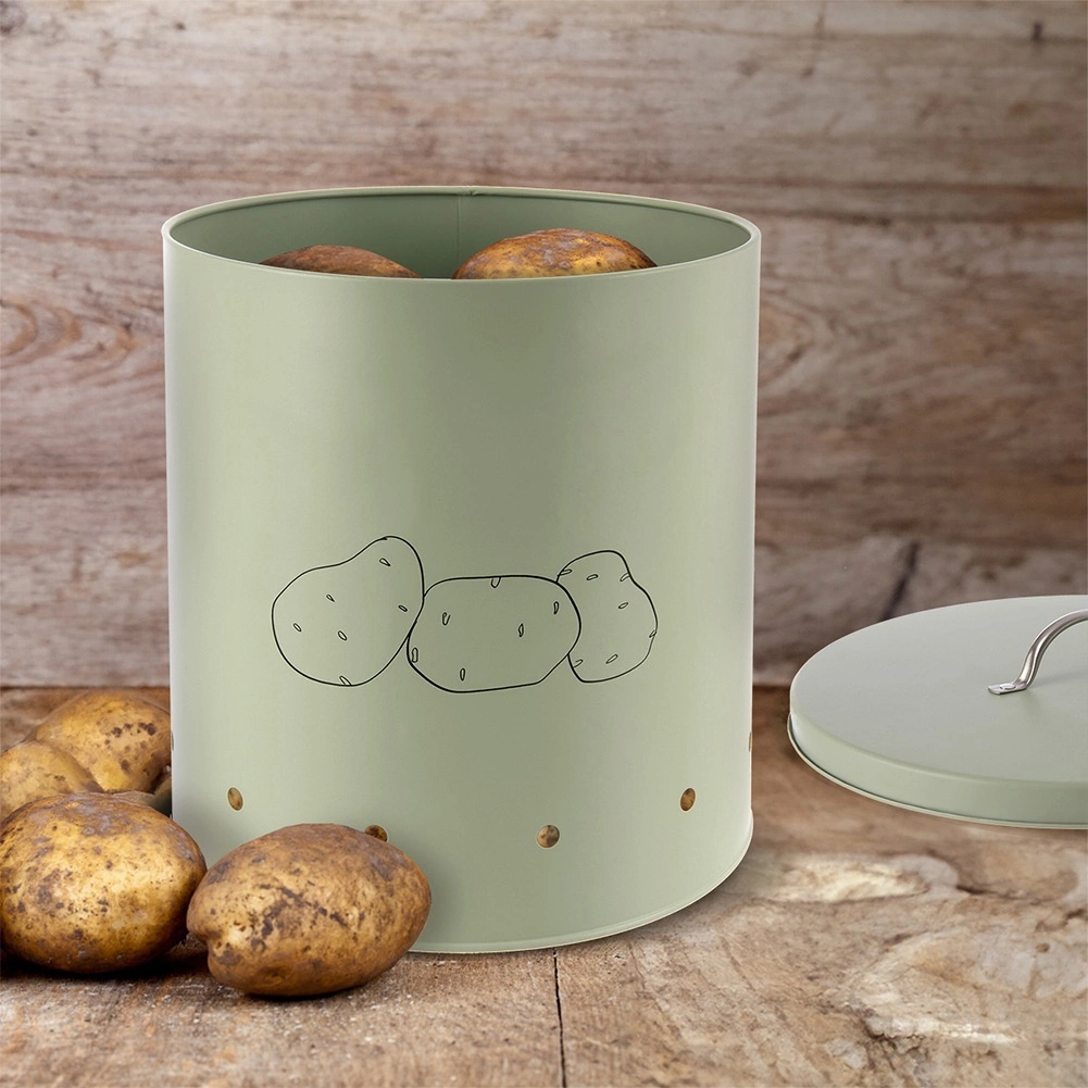 Der praktische Deckel begrenzt effektiv den Lichteinfall und beugt damit dem Keimen von Kartoffeln vor. Eine minimalistische Kartoffelgrafik auf der Vorderseite zeigt den Inhalt an und verleiht Ihrer Küche zugleich einen dekorativen Akzent.
