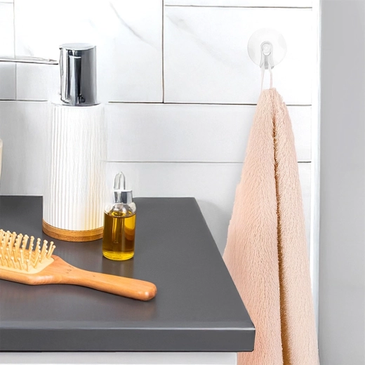 Sie suchen eine einfache und zuverlässige Lösung zum Aufhängen kleiner Gegenstände ohne Bohren? Diese Haken mit Saugnapf sind die ideale Wahl. Dank starker Haftung halten sie hervorragend auf Glas, Spiegeln, glatten Fliesen oder Laminat, und ihre transparente Ausführung passt zu jedem Interieur.