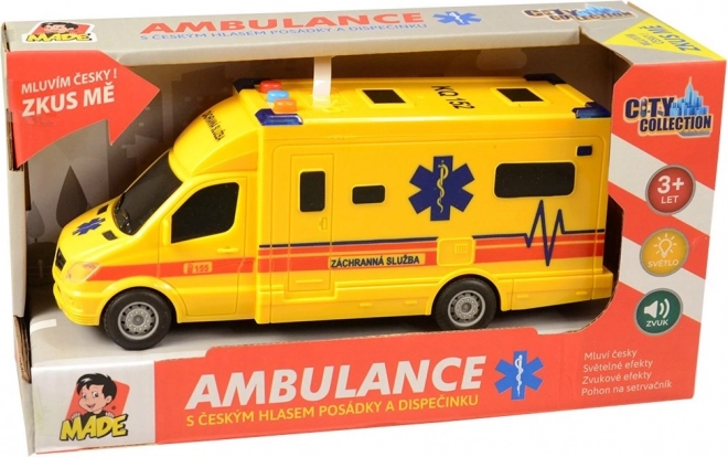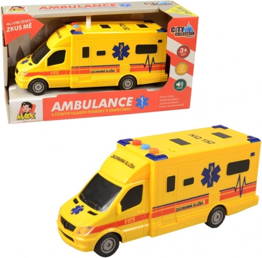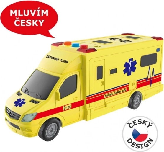 Dieses detailreich gestaltete Rettungsfahrzeug im tschechischen Design des Rettungsdienstes bringt Kindern jede Menge Action und Spielspaß. Auf Knopfdruck ertönen realistische Ansagen der Leitstelle und der Besatzung, ergänzt durch funktionierendes Blaulicht und Soundeffekte. Dank des Schwunglauf-Antriebs fährt das Auto leicht über den Boden, ohne ständig geschoben werden zu müssen.