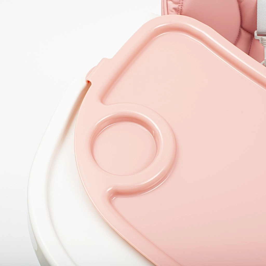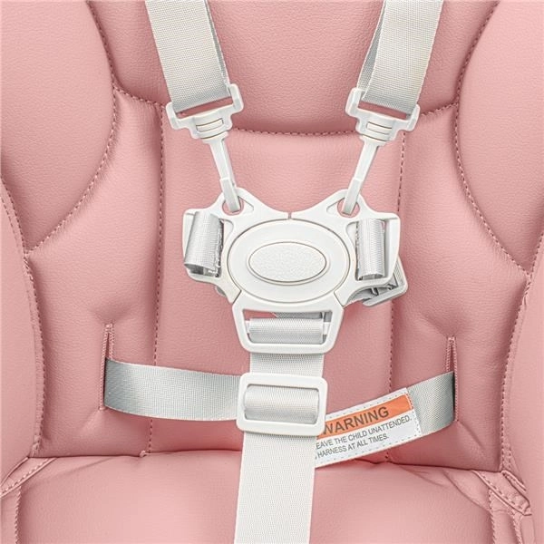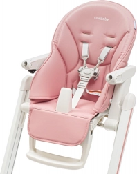 Der stilvolle Kinder-Hochstuhl New Baby Muka in der Farbe Dusty Pink bietet ein modernes Design, weiche Polsterung aus Kunstleder und sichere 5-Punkt-Gurte. Dank Höhenverstellung, verstellbarer Rückenlehne und abnehmbarem Doppeltablett ist er ideal für das tägliche Füttern und Spielen.