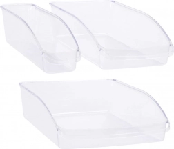 Das Set aus 3 praktischen Kühlschrankboxen hilft Ihnen, Lebensmittel ordentlich zu sortieren und länger frisch zu halten. Die transparente Ausführung bietet sofortige Übersicht über den Inhalt, und die offene Vorderseite ermöglicht das schnelle Entnehmen von Flaschen, Joghurts oder Gemüse. Die Organizer sind leicht, strapazierfähig und einfach zu reinigen – ideal für jeden Haushalt.