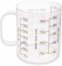Erleichtern Sie sich Kochen und Backen mit dem kompakten Messbecher in Becherform. Dank der fünffachen Skala messen Sie schnell und präzise Volumen und Gewicht der gängigsten Zutaten. Der Messbecher besteht aus robustem und leichtem Kunststoff, der lebensmittelecht und widerstandsfähig gegen mechanische Beschädigungen ist.