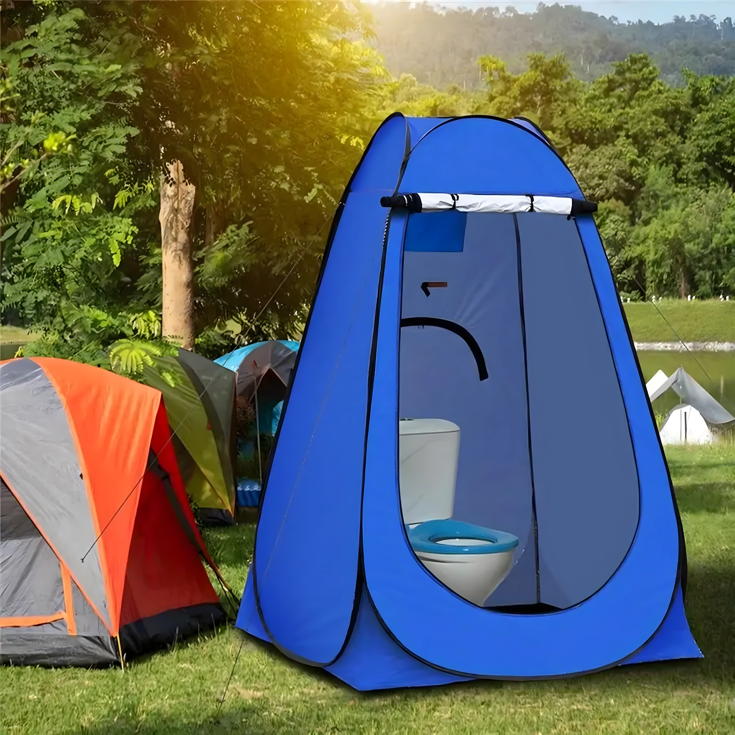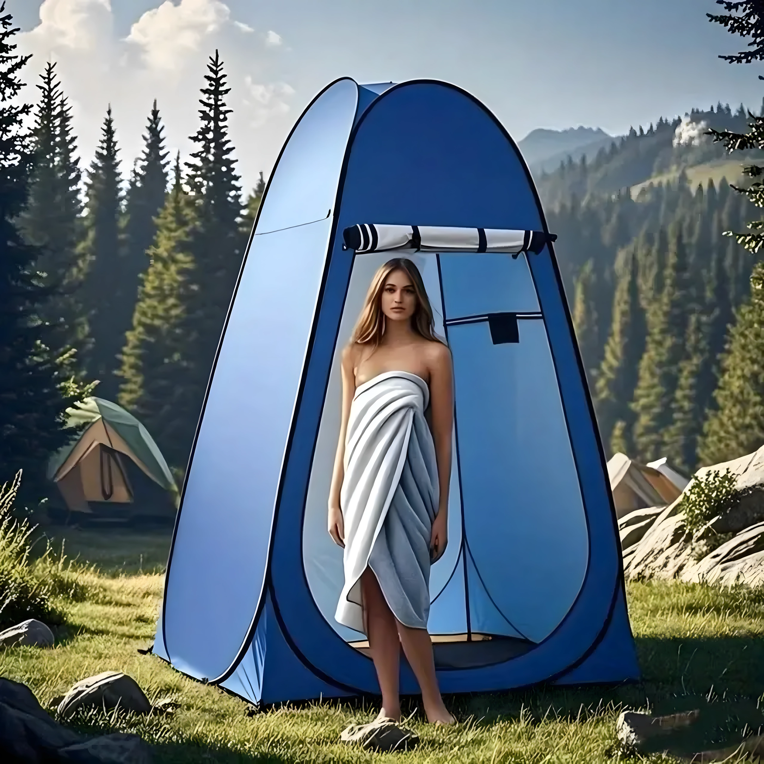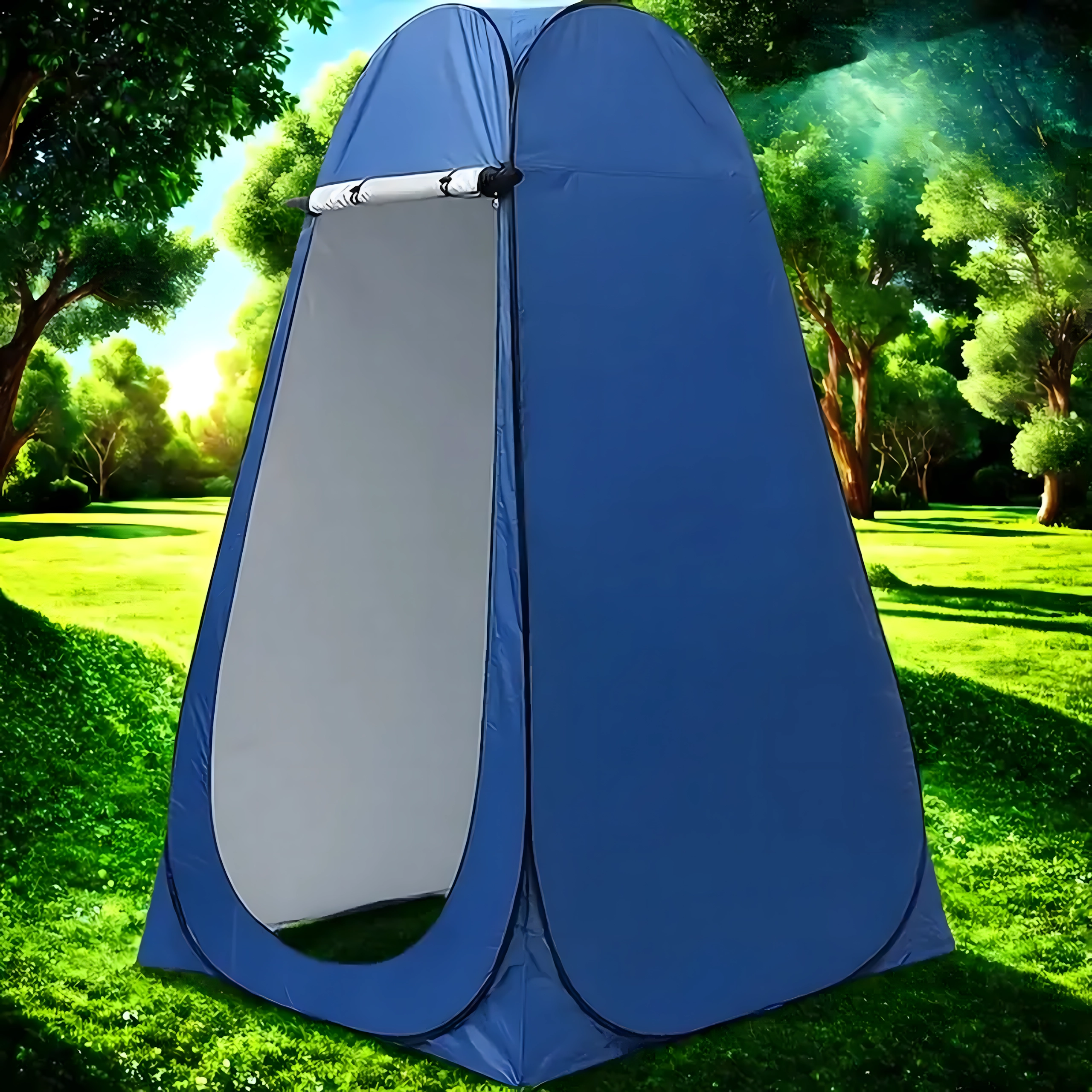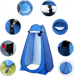 Hohe Wände, ein breiter Reißverschluss‑Eingang und die Möglichkeit, eine Dusche aufzuhängen oder eine mobile Toilette zu platzieren, machen dieses Zelt zu einer vielseitigen Lösung für Outdoor‑Aktivitäten.