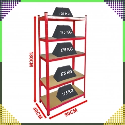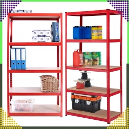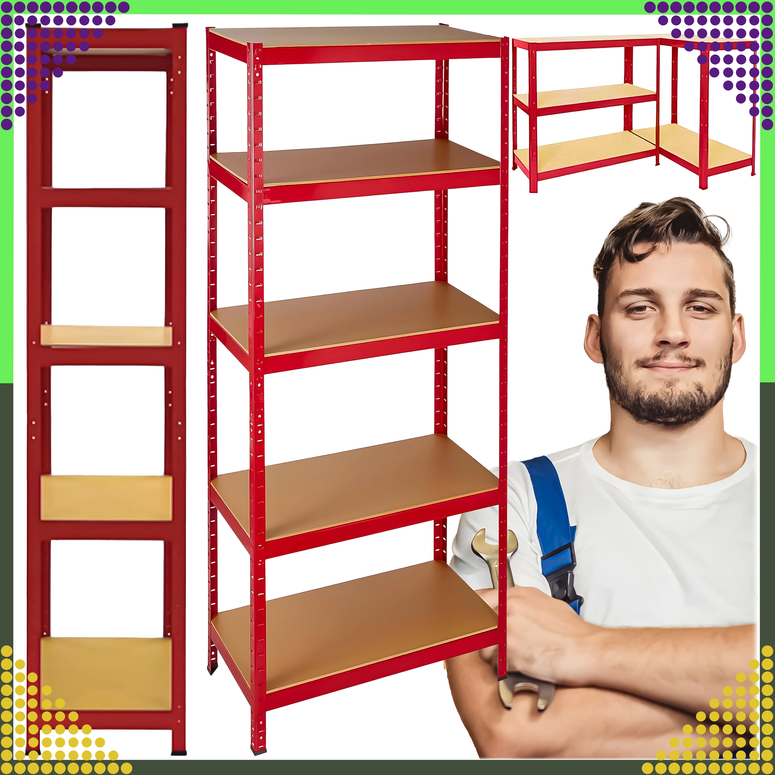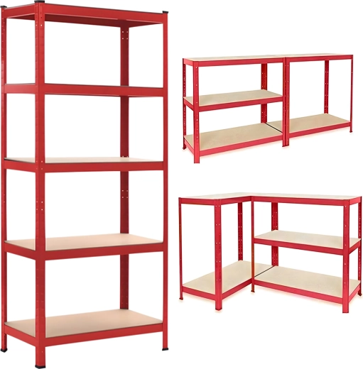 Stabiles Stahlregal in elegantem Rot – ideal für Garage, Keller, Werkstatt, Lager und private Archive. Dank der verstellbaren Böden passen Sie die Höhe der Ablageebenen leicht Ihren Bedürfnissen an und nutzen den vertikalen Raum effizient.