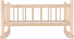 Die Wiege ist für Kinder ab 3 Jahren geeignet und hilft durch ihre sanfte Schaukelbewegung, die kindliche Fantasie und die Pflege der Puppe zu entwickeln. Mit ihren Maßen von 49 x 28 x 27 cm ist sie ausreichend geräumig für die meisten Standardpuppen.