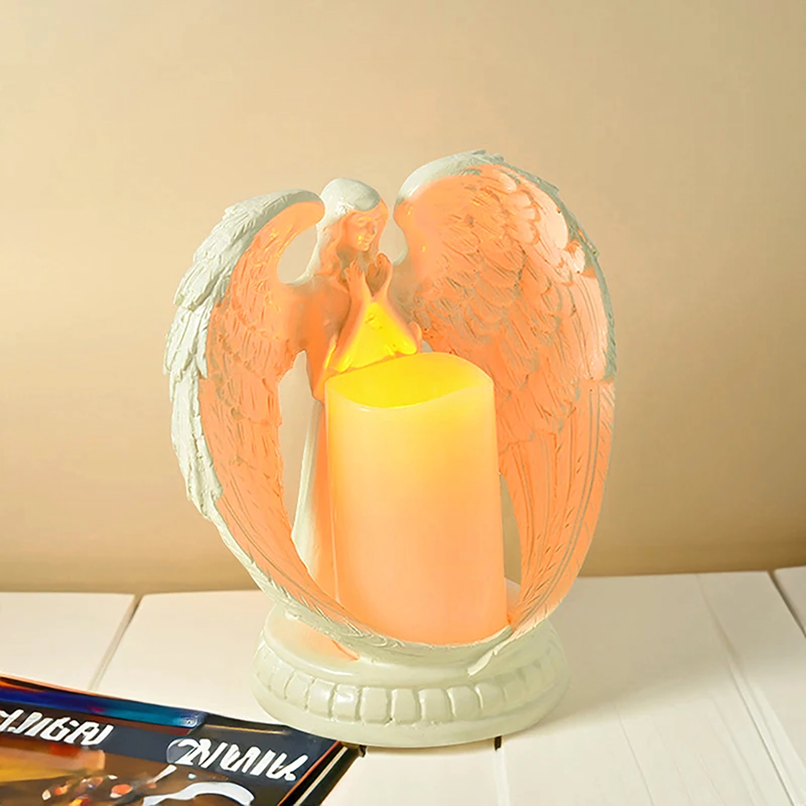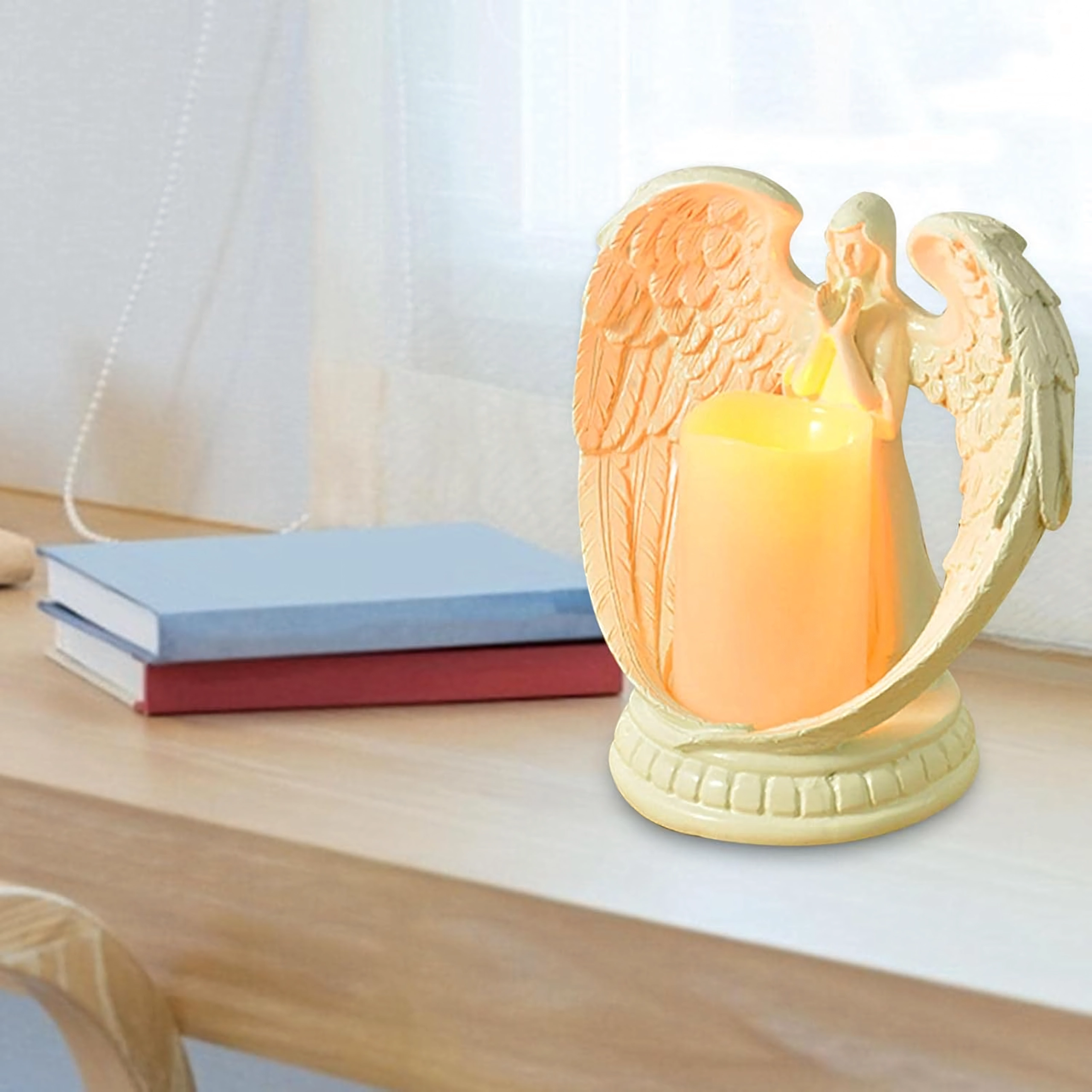 Bringen Sie Zauber und Harmonie in Ihr Zuhause mit der dekorativen Engelfigur mit Kerze. Die realistische LED-Beleuchtung schafft eine angenehme, warme Atmosphäre – ganz ohne Rauch und Schmutz wie bei einer klassischen Kerze. Poliertes Harz verleiht der Figur ein elegantes Aussehen und hohe Langlebigkeit.