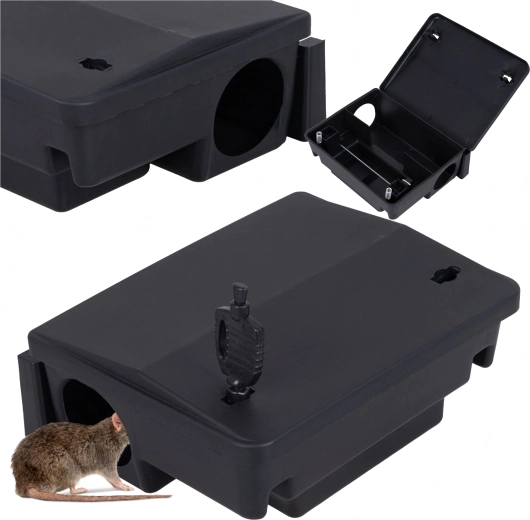 Die abschließbare Futterstation für Nagetiere ermöglicht es, Giftköder sicher zu platzieren (Köder nicht im Lieferumfang enthalten) und Schädlinge durch den Geruch direkt in die Station zu locken. Die robuste Konstruktion aus PP-Kunststoff gewährleistet hohe Widerstandsfähigkeit, einfache Pflege und eine lange Lebensdauer – sowohl in Haushalten als auch in Lagern, Garagen oder Betrieben.