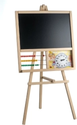 Diese Holztisch-Standtafel ist ideal für das Kinderzimmer eines kleinen Schülers. Sie ist mit einem Abakus und lustigen Zeigeruhren ausgestattet, die viele Möglichkeiten für ein spielerisches Lernen bieten.