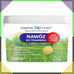 Leistungsstarker Mehrnährstoff-Rasendünger in Granulatform mit dem Nährstoffverhältnis NPK 20-8-10 versorgt den Rasen intensiv für einen dichten Wuchs, satte grüne Farbe und Wetterbeständigkeit. Dank des ausgewogenen Gehalts an Stickstoff, Phosphor und Kalium unterstützt er das Wachstum des oberirdischen Teils, die Wurzelentwicklung und die Regeneration des Rasens. Die 5-kg-Packung reicht für bis zu ca. 250 m².
