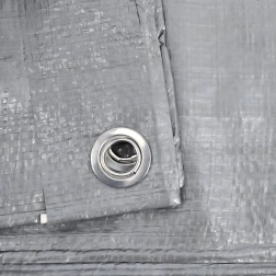 Metallösen entlang des Randes ermöglichen das schnelle Befestigen der Plane an Rahmen, Heringen oder Seilen und sorgen für Stabilität auch bei Wind.