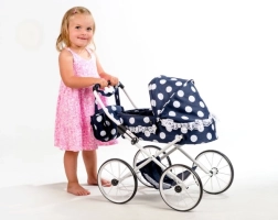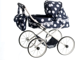 Puppenwagen Ewa Retro, schwarz mit Punkten und Spitze